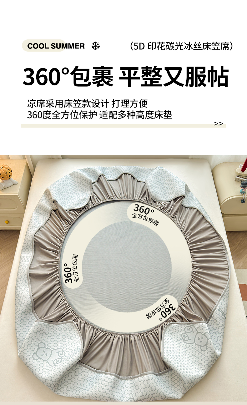 商品名称:(总)义博家纺 2026新款碳光冰丝席5D印花床笠款