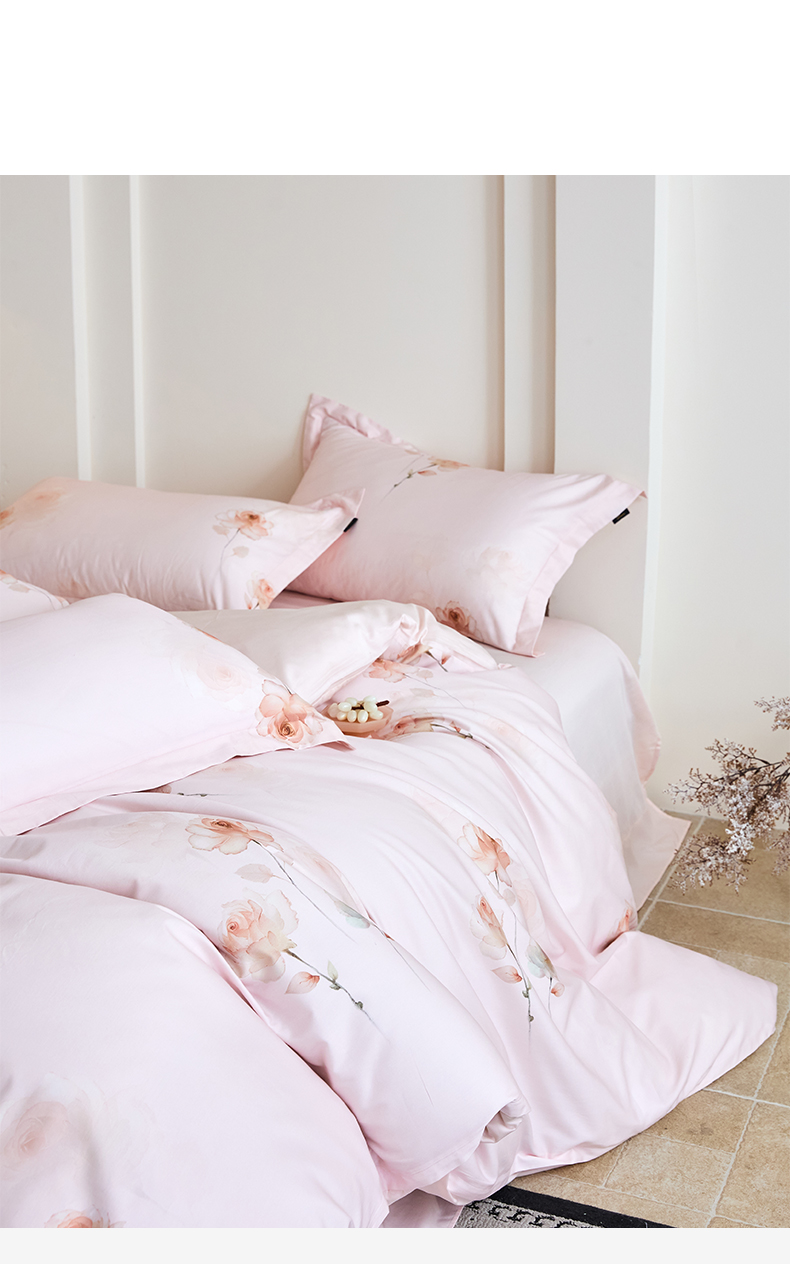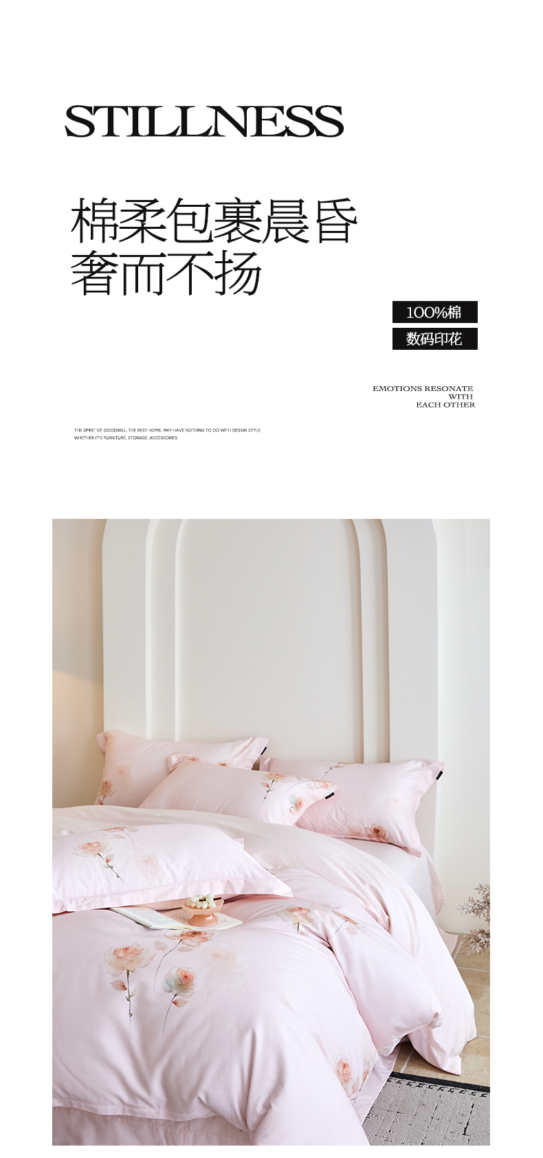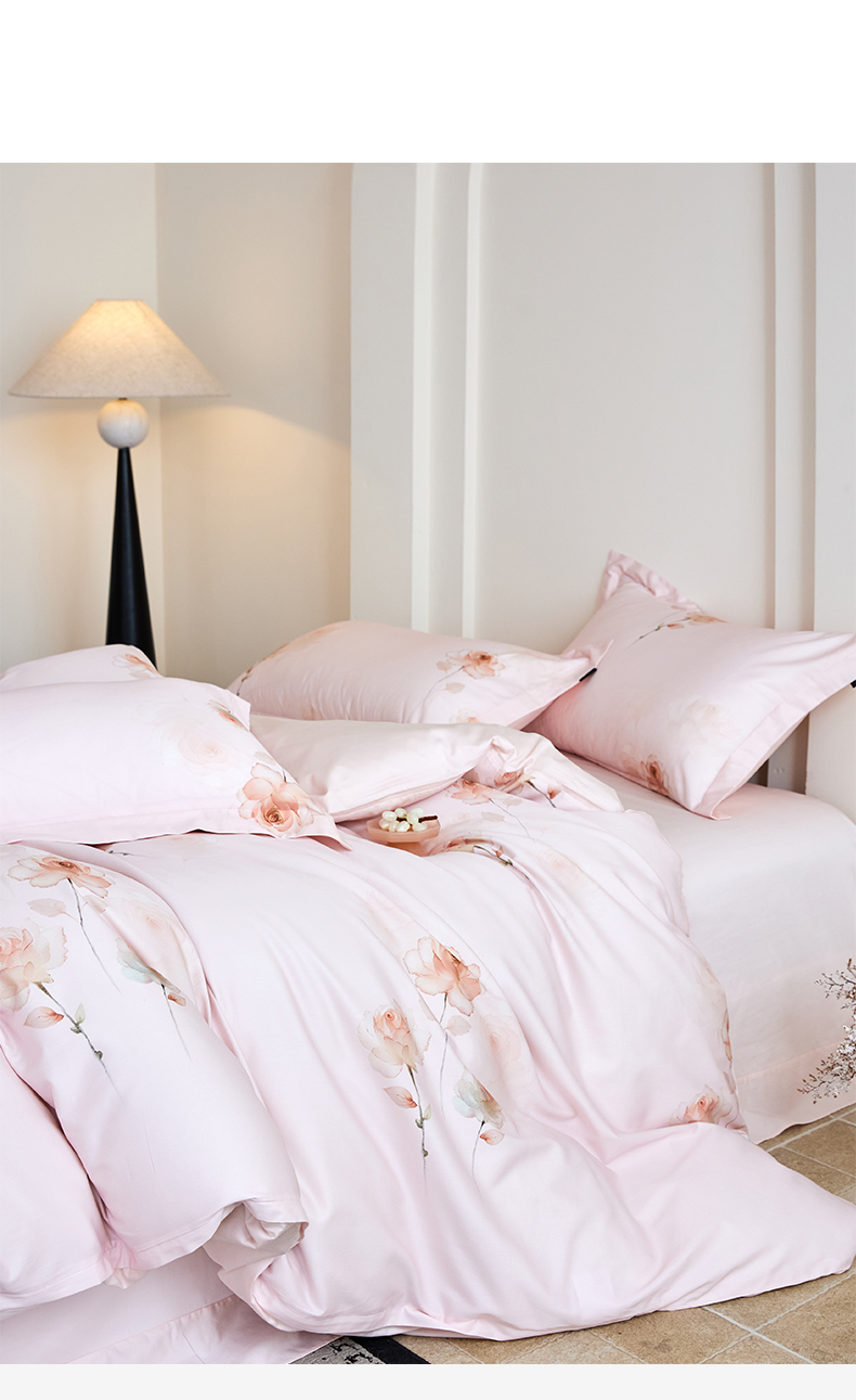 商品名称:帅露家纺 2026新款全棉60支长绒棉数码印花四件套 蔷薇花语粉