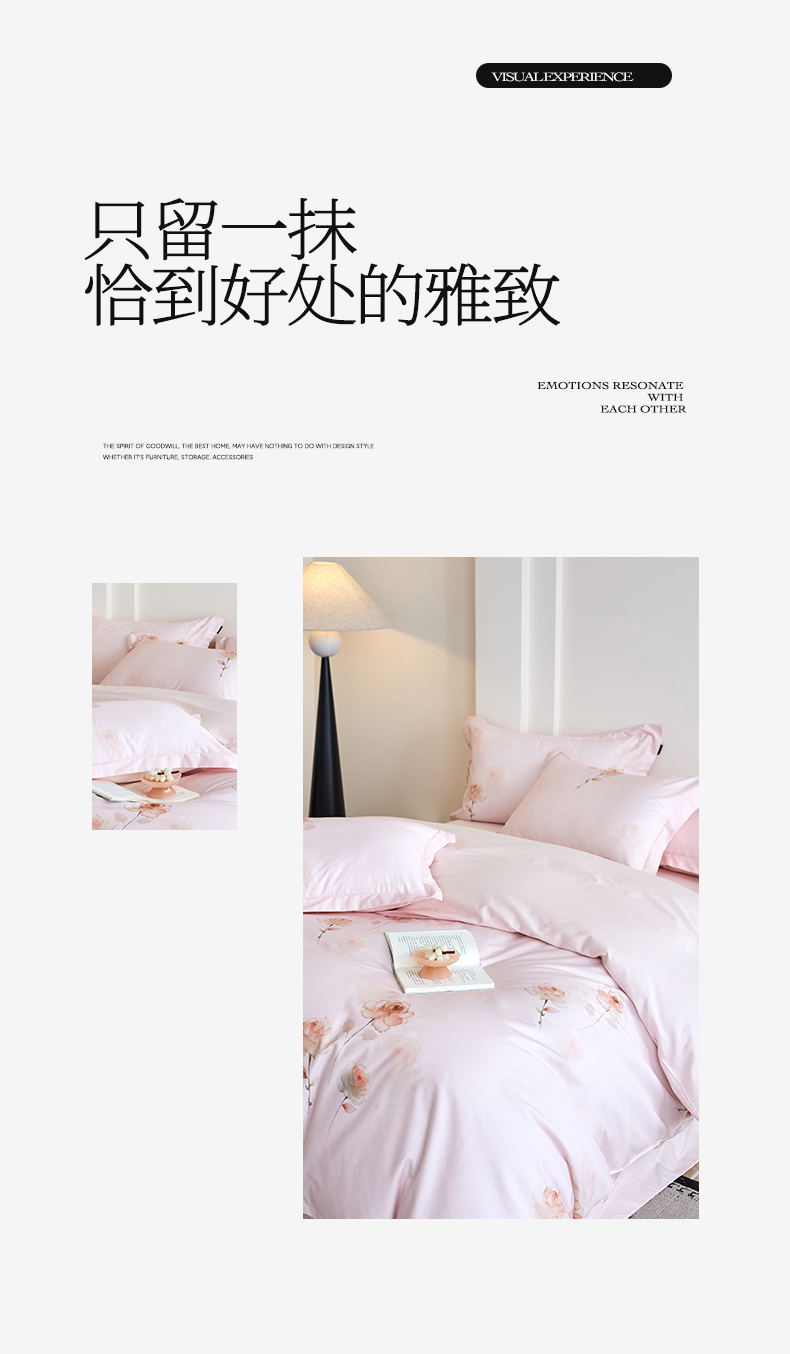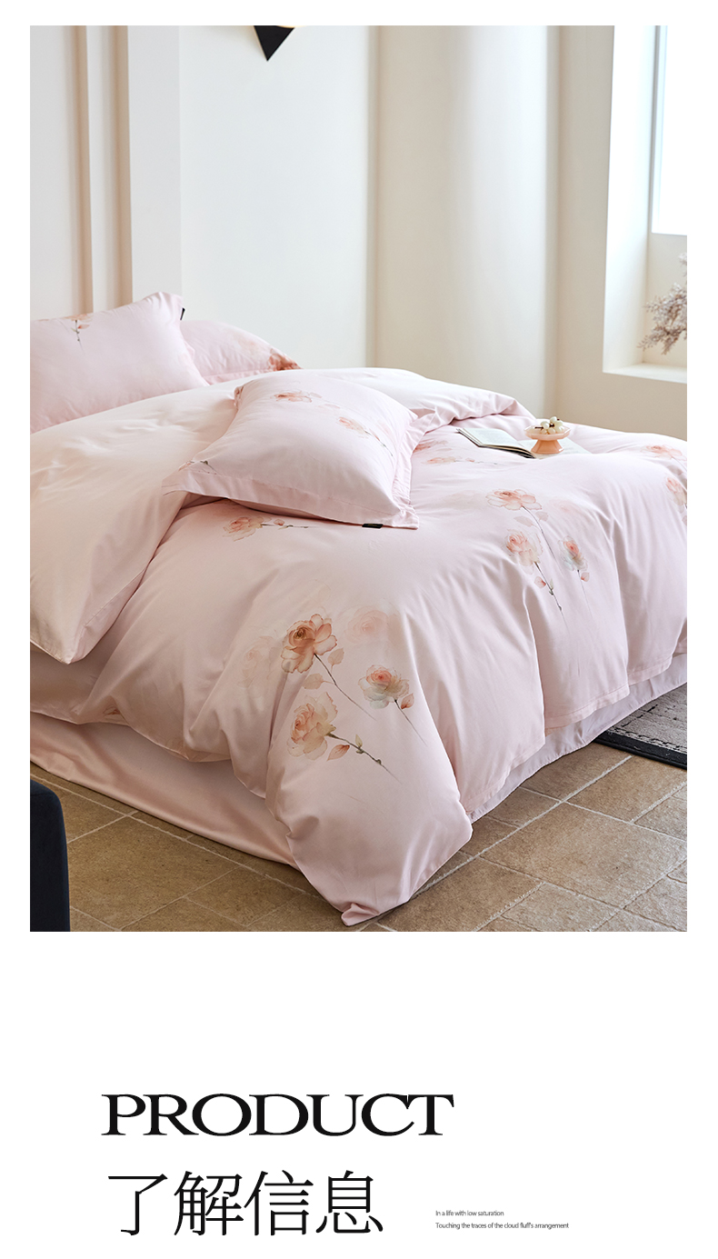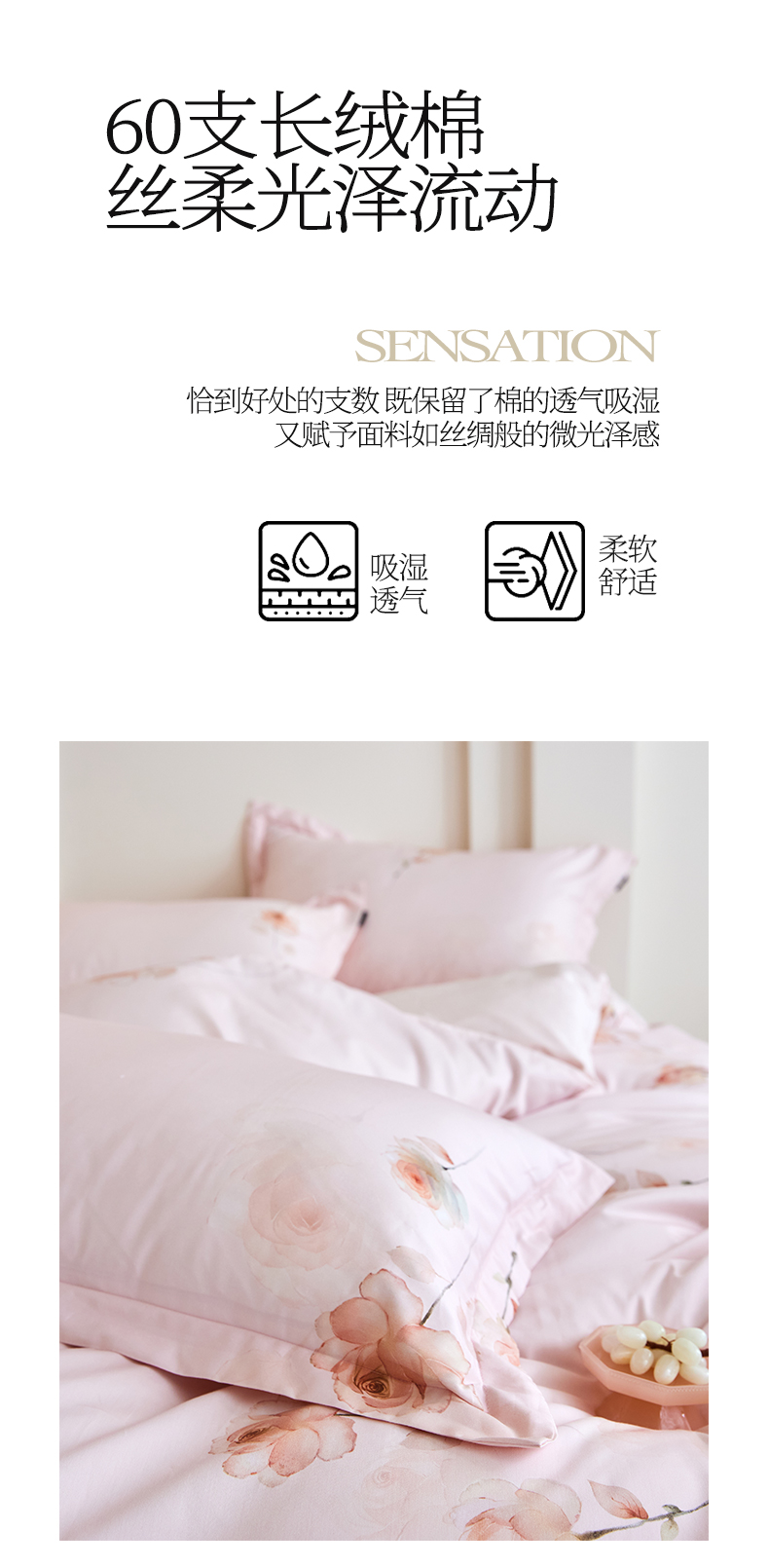商品名称:帅露家纺 2026新款全棉60支长绒棉数码印花四件套 蔷薇花语粉