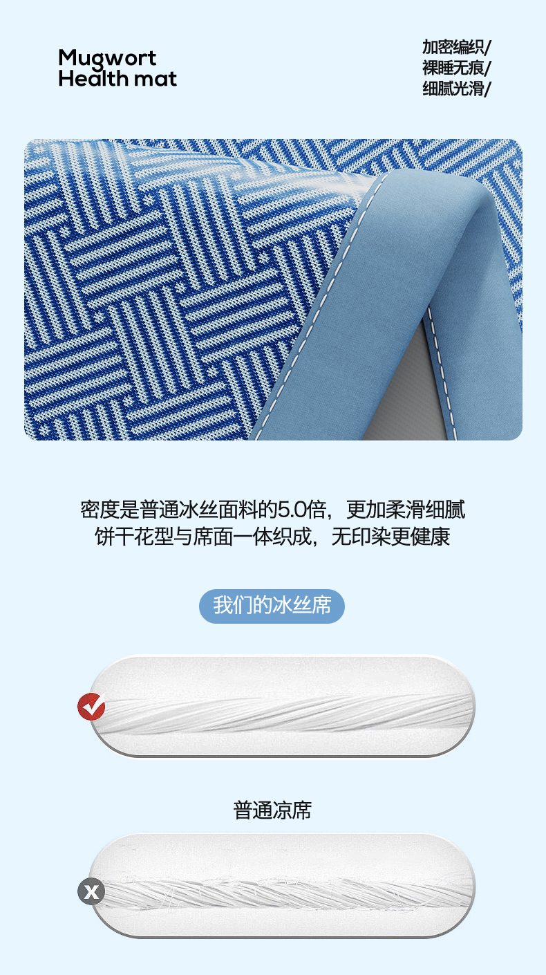 商品名称:(总)好艺佳毛毯 2026新款艾草凉席冰丝席绣花高密碳光软席PE饼干花三件套学生宿舍可机洗水洗