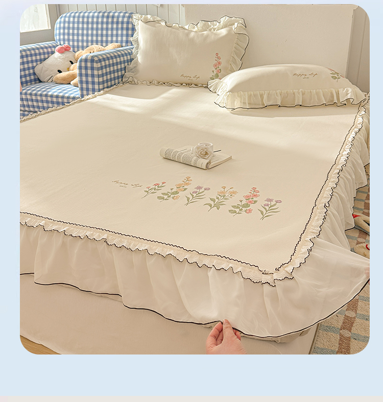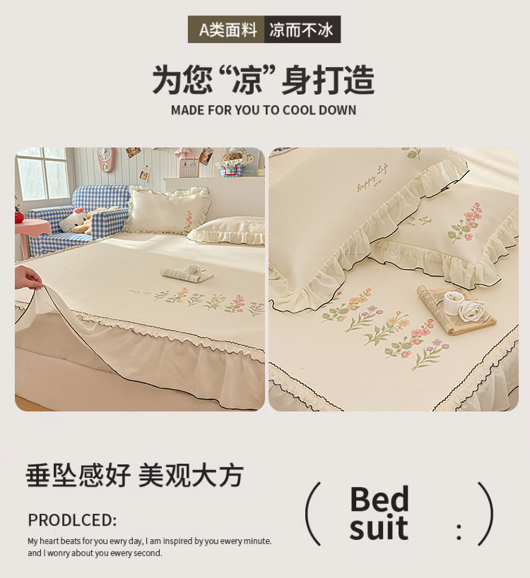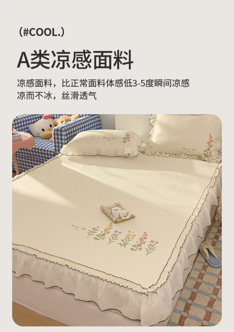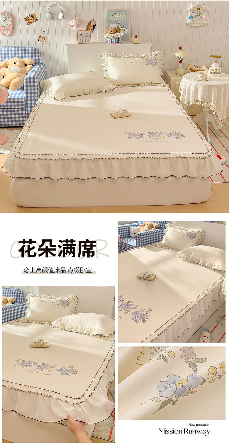 商品名称:川悦生活 2026新款凉豆豆凉感冰丝床裙三件套 花间小叙