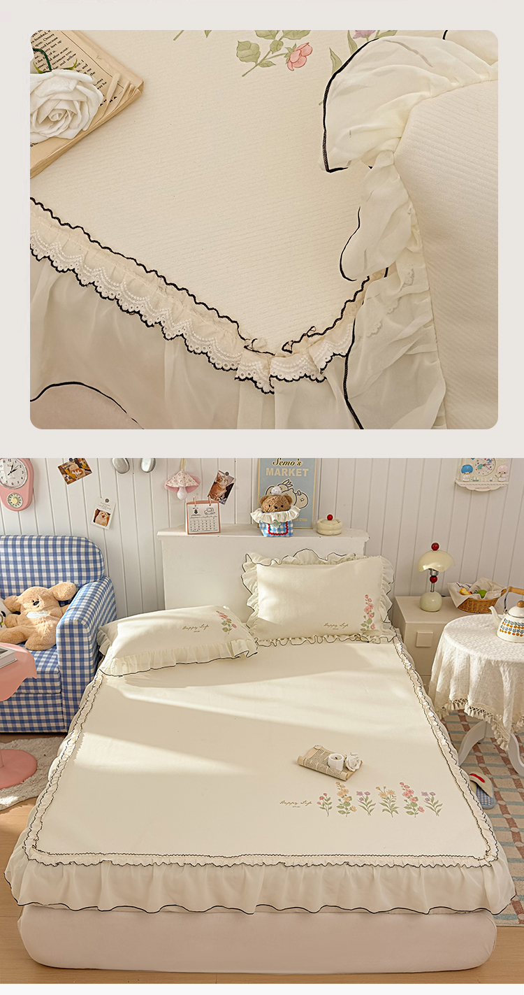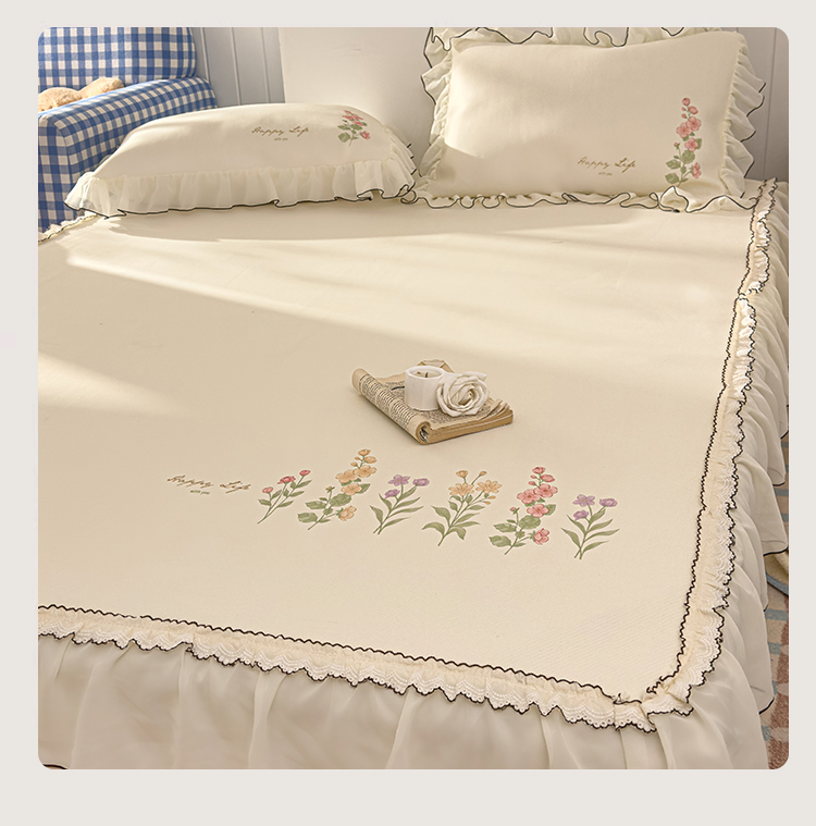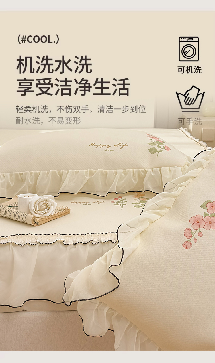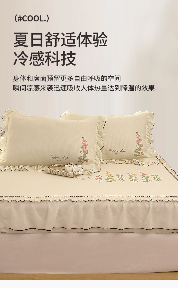 商品名称:川悦生活 2026新款凉豆豆凉感冰丝床裙三件套 花间小叙