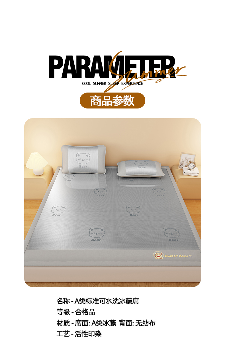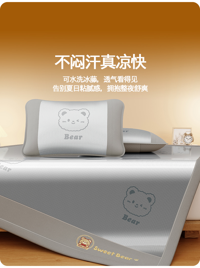 当前位置: 91家纺网 > 商品网购 > 床上用品 > 凉席 > 冰丝席 > 卡初家居(原微来) 2026春夏新款快乐熊水洗冰藤床席款床笠款 快乐熊-优雅粉-床席款