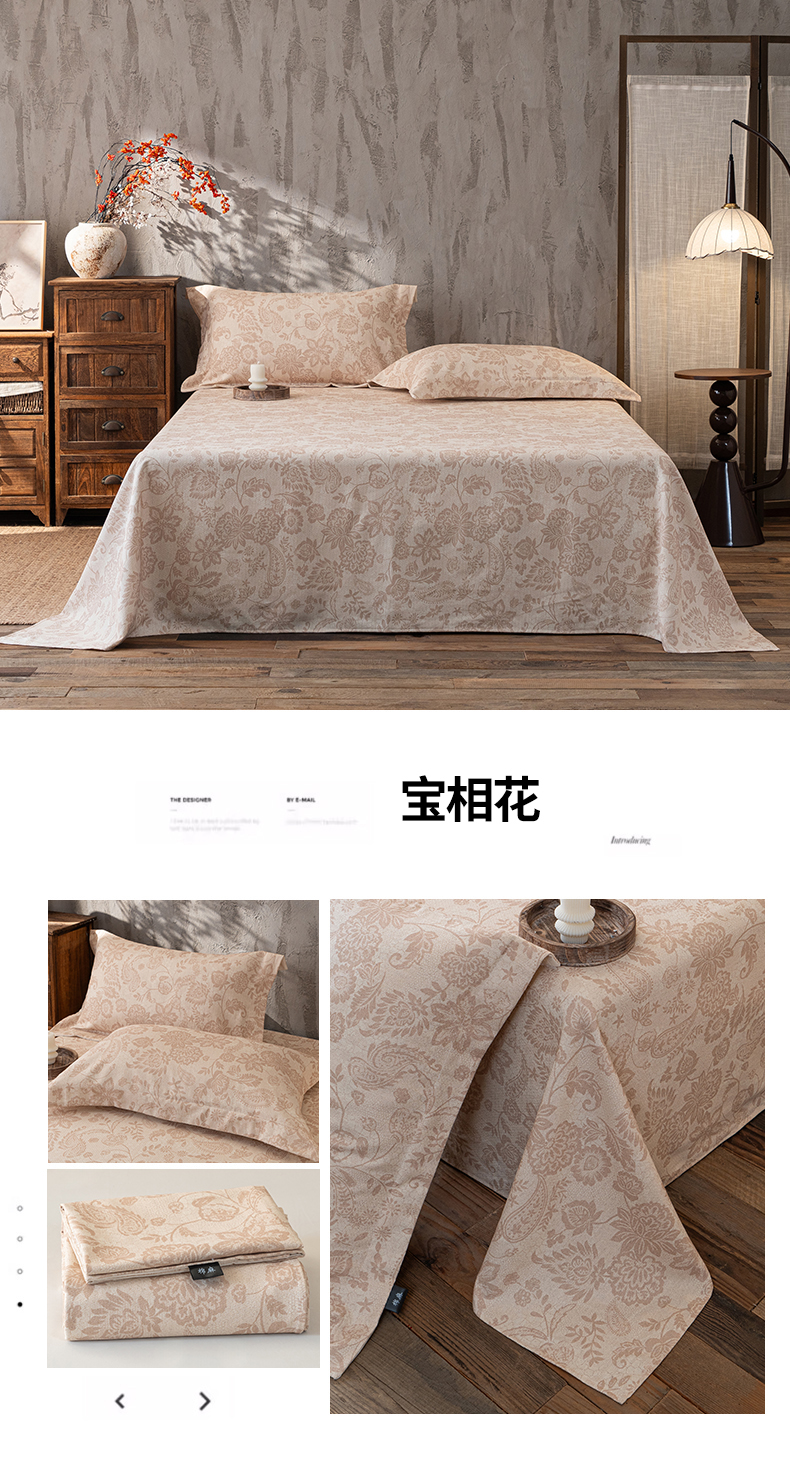 (总)凌云家纺 2026新款直播爆款复古风棉麻提花老粗布床单席子凉席三件套