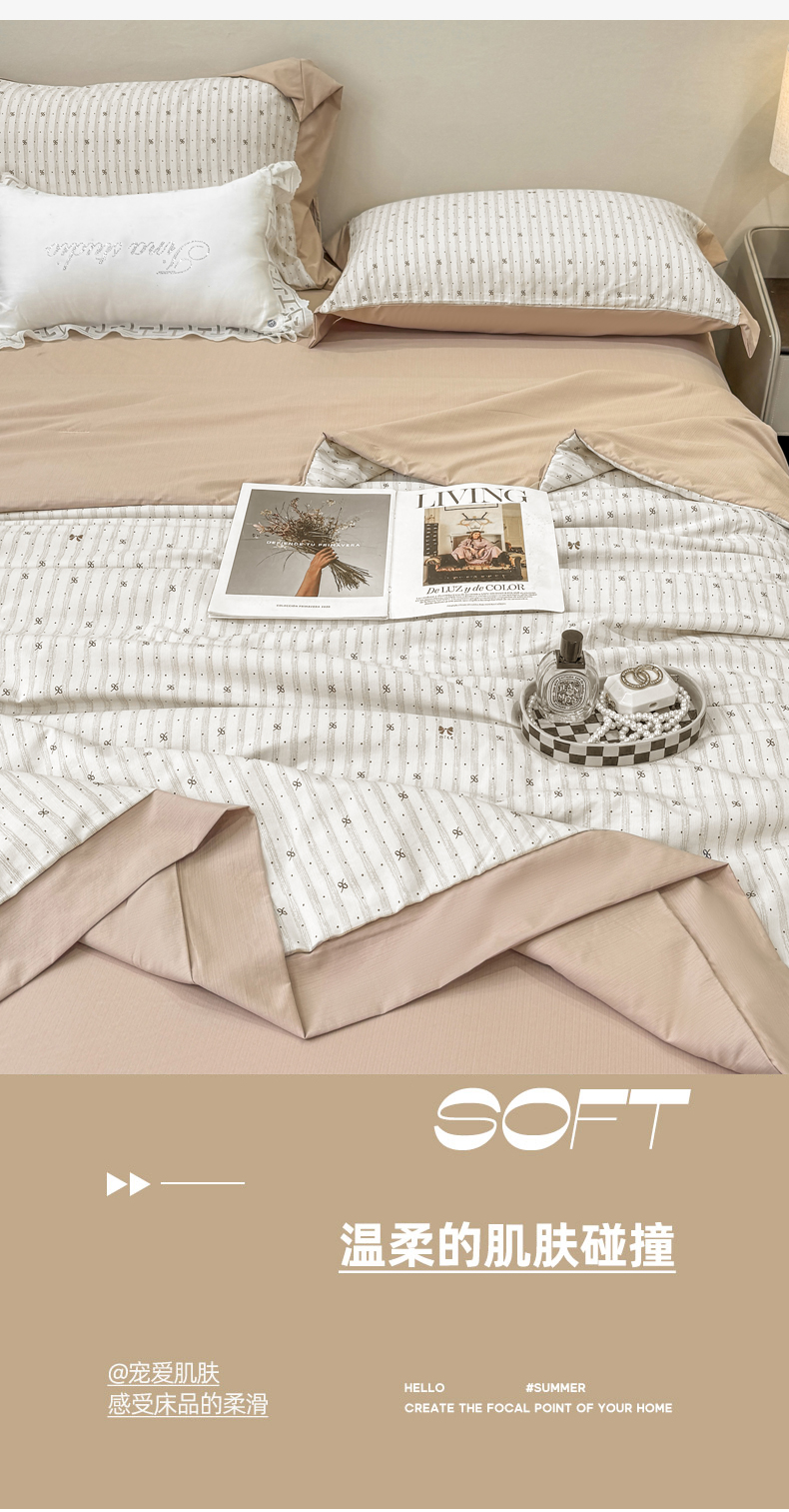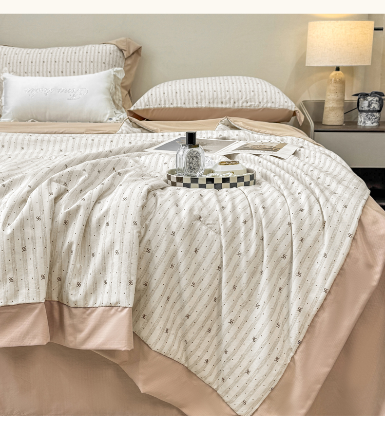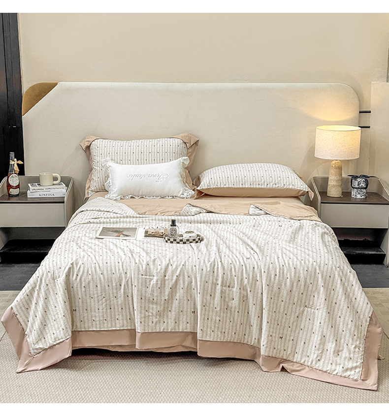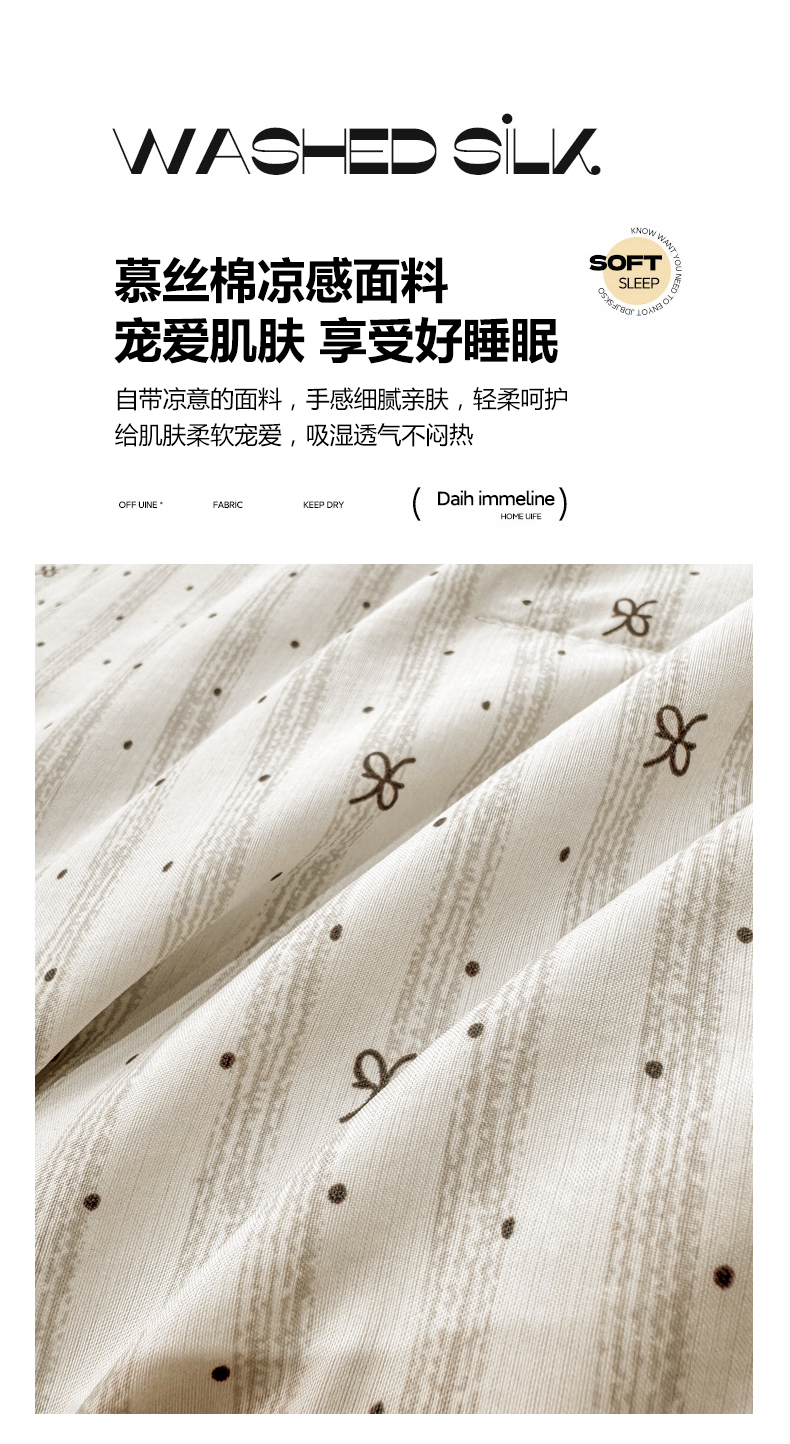 当前位置: 91家纺网 > 商品网购 > 床品套件 > 四件套 > 其它四件套 > 慕木家纺 2026新款A类印花慕丝棉凉感夏被夏凉被空调被四件套 波点序章+驼