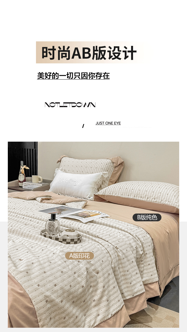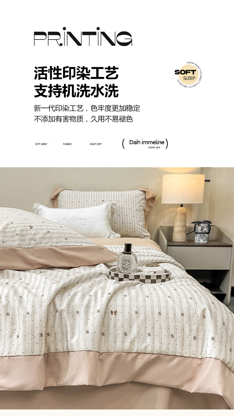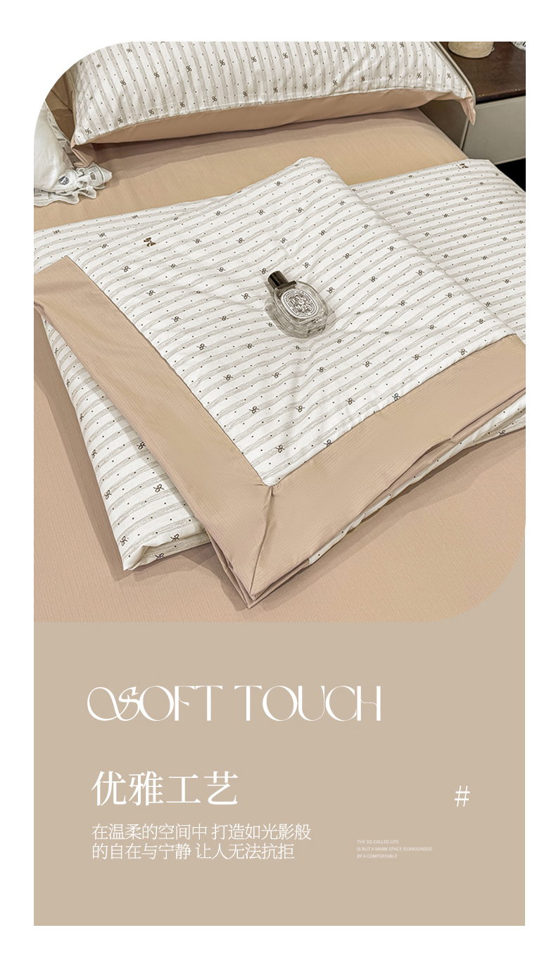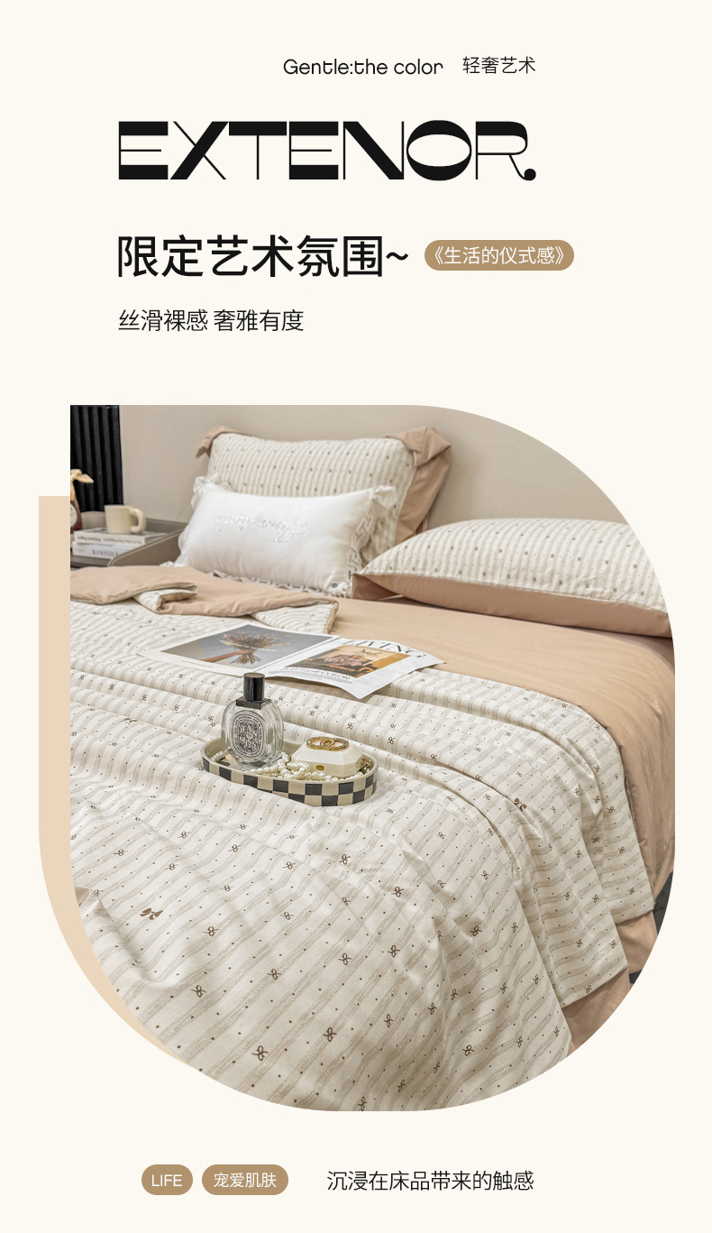 当前位置: 91家纺网 > 商品网购 > 床品套件 > 四件套 > 其它四件套 > 慕木家纺 2026新款A类印花慕丝棉凉感夏被夏凉被空调被四件套 波点序章+驼