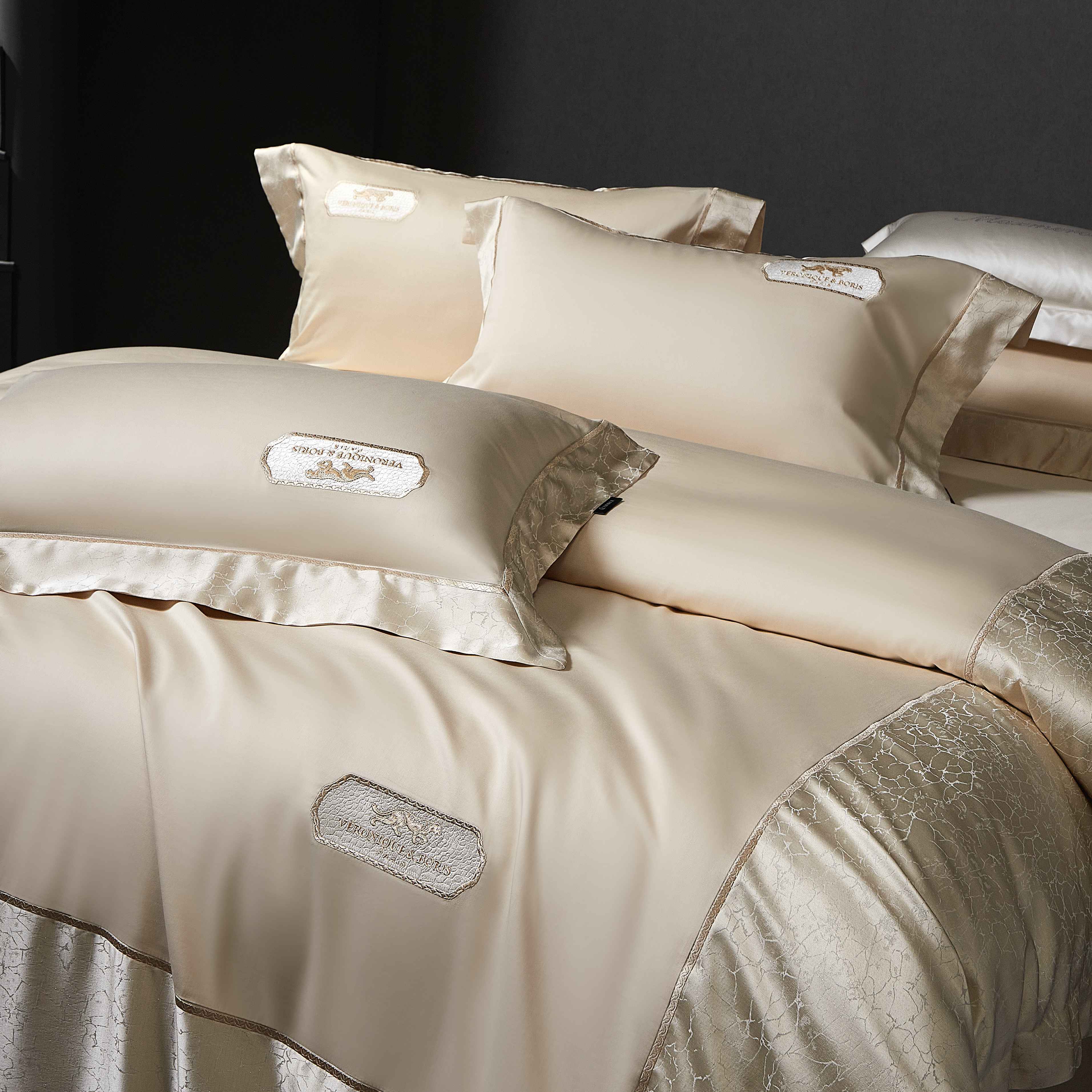 商品名称:馨蕊家居 2026春夏新品100S高精密刺绣四件套-简序系列 高精密简序-高级灰