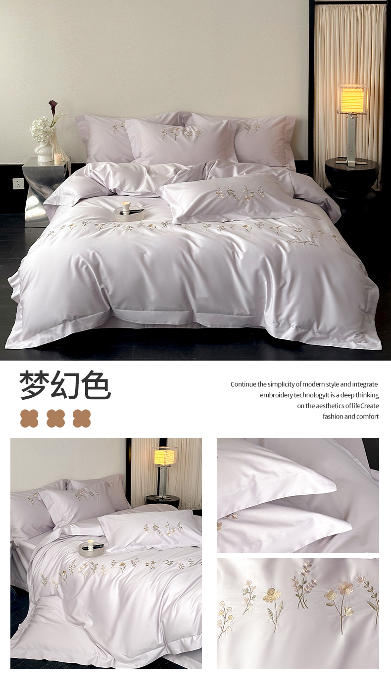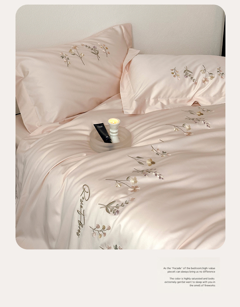 (总)泽西 2026新品刺绣50s双股全棉长绒棉宽边四件套-花栖【控价358-378】,花栖-公主粉,花栖-浅妃灰,花栖-肉肉粉,花栖-清新绿,花栖-浅云蓝,花栖-梦幻紫