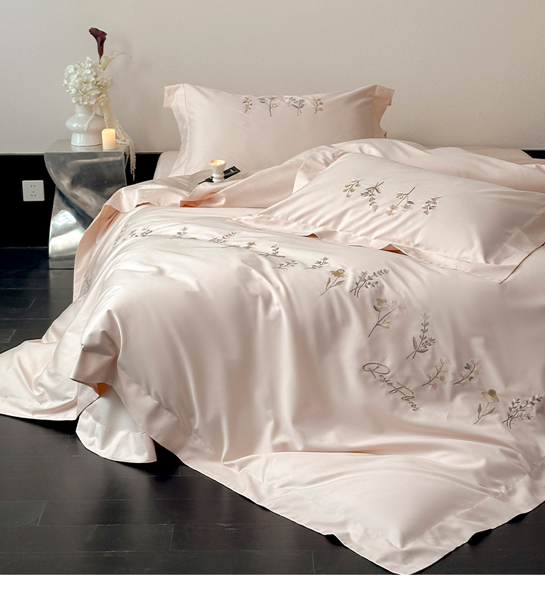 商品名称:(总)泽西家纺+V17798841158发大图 2026新品刺绣50s双股全棉长绒棉纯棉宽边四件套-花有约