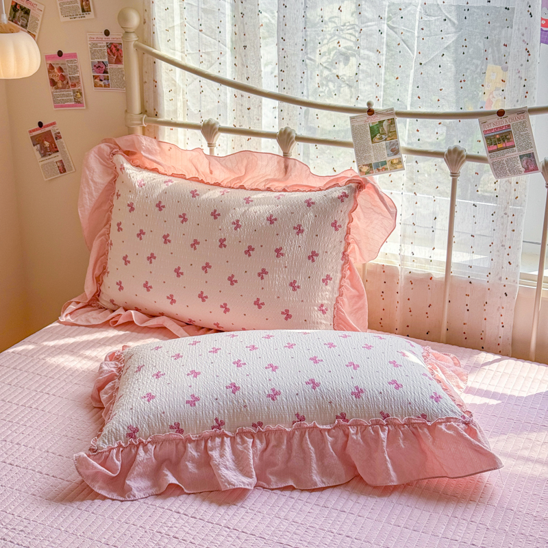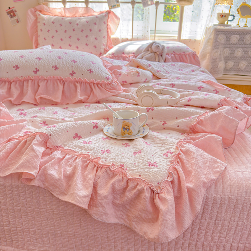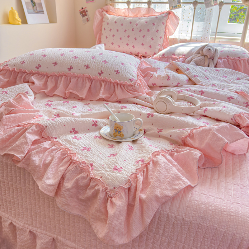梵希雅 2026新款泡芙纱纯棉蕾丝花边夏被四件套 莓系花伐,莓系花伐