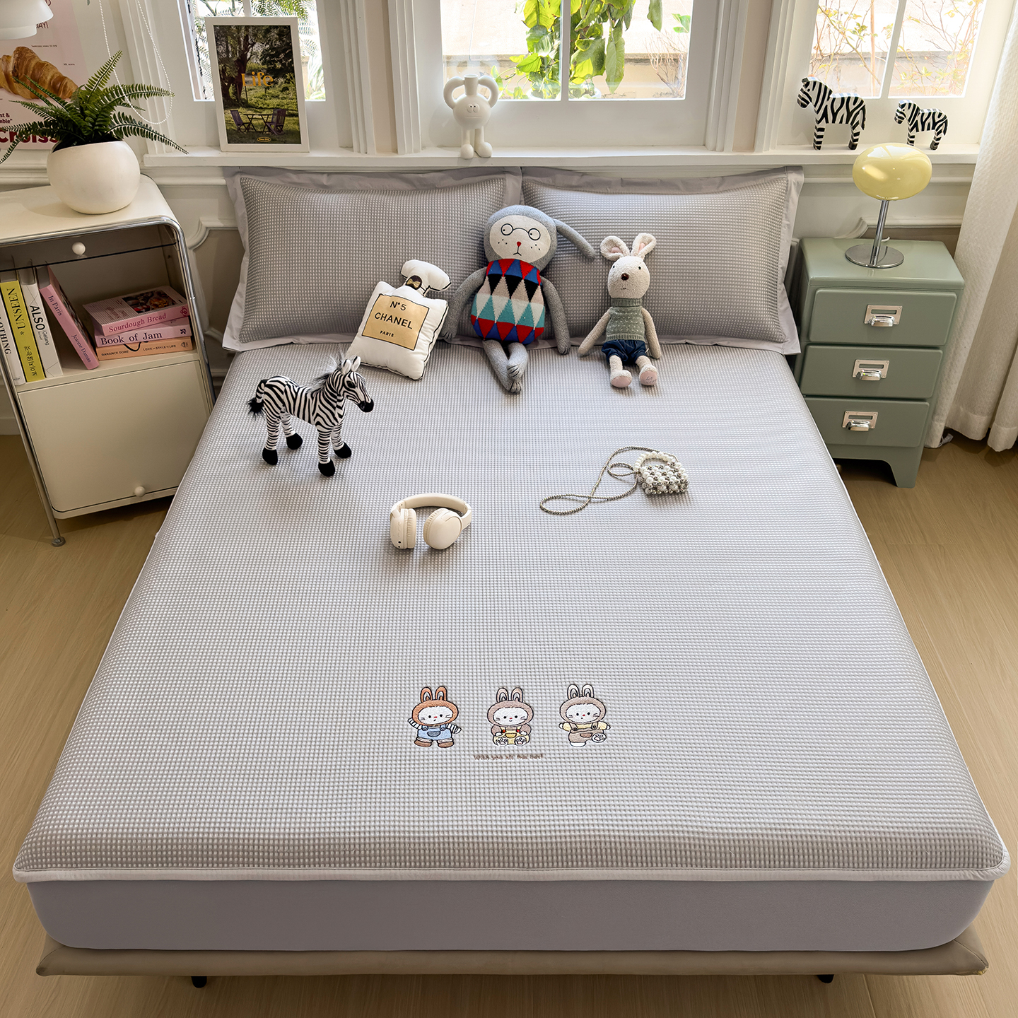 几禾 2026新款华夫格刺绣款凉席-床笠款 兔免星人-床笠款