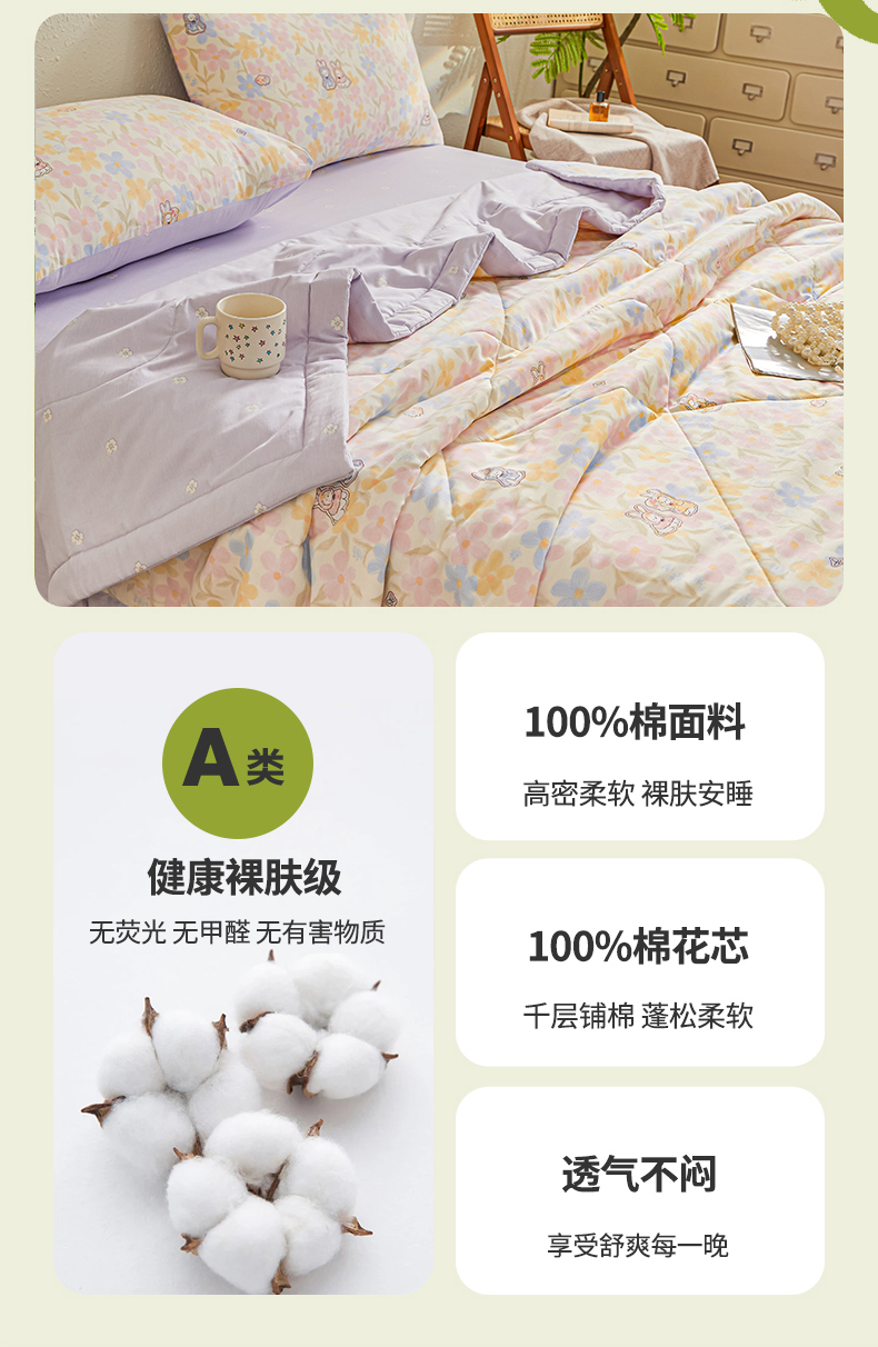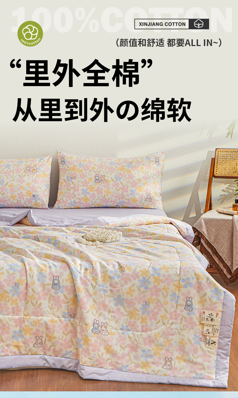 小禹仔家纺 2026新款A类里外全棉印花棉花夏被 许愿兔