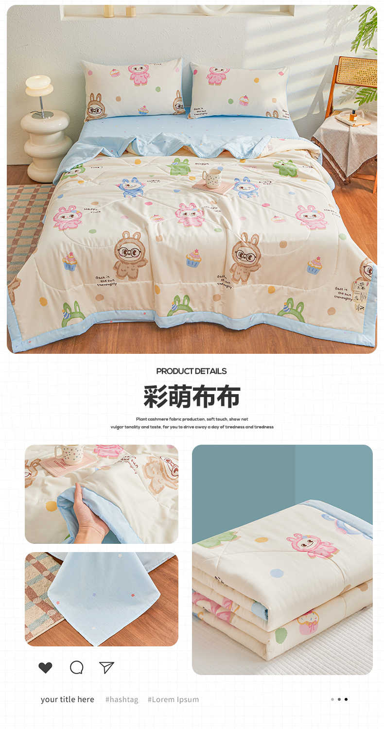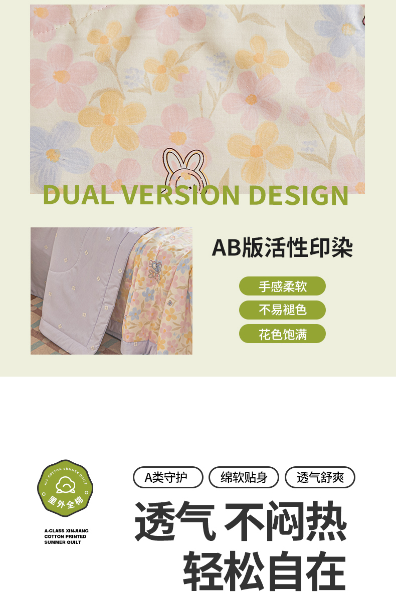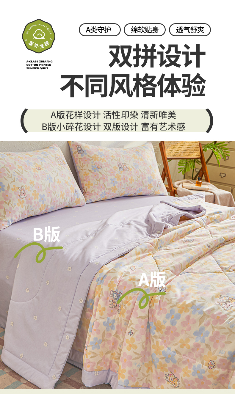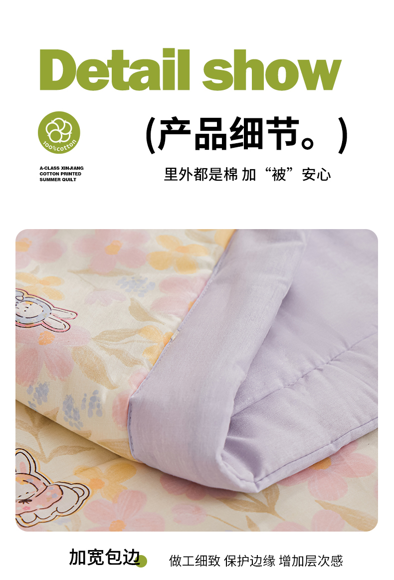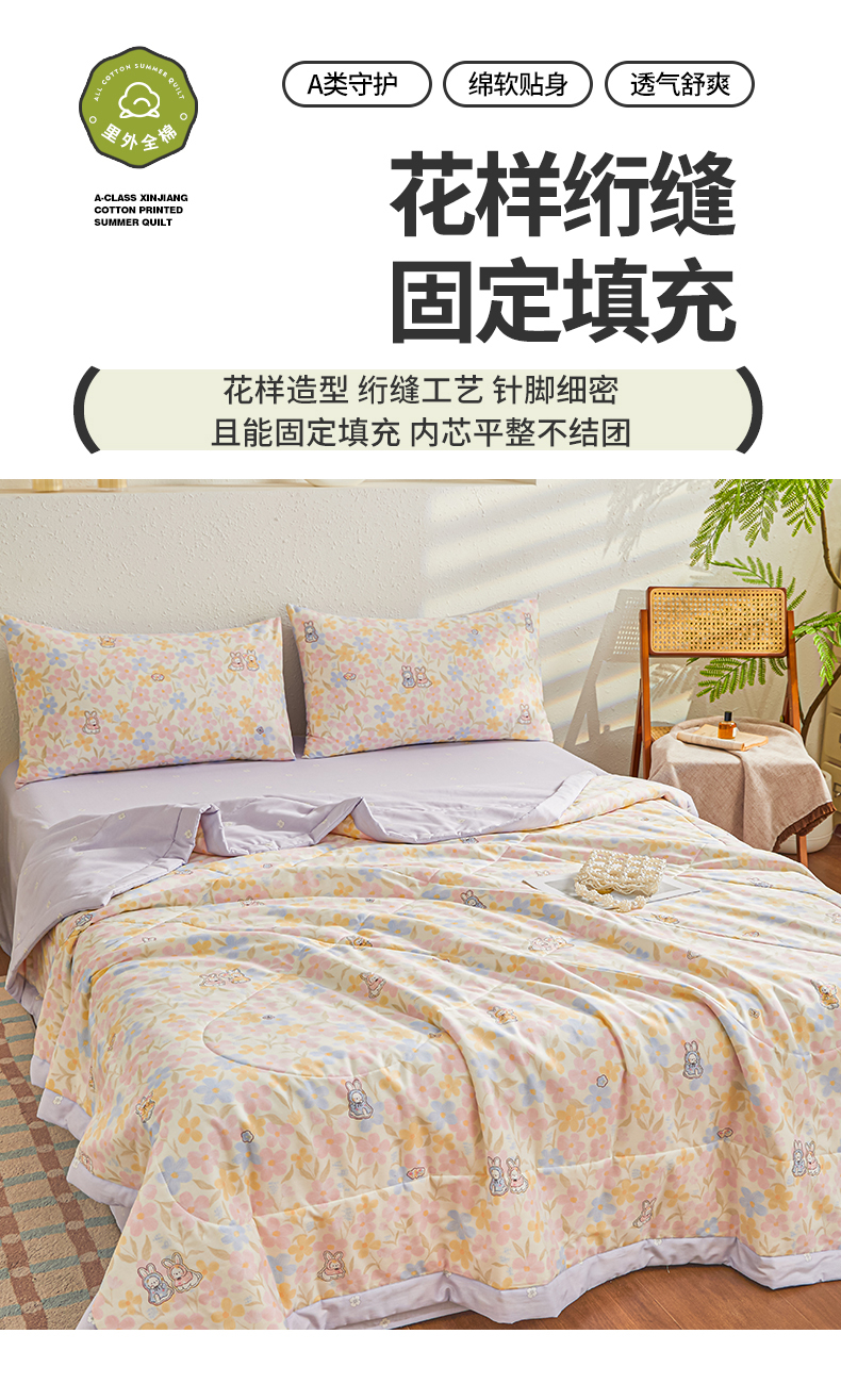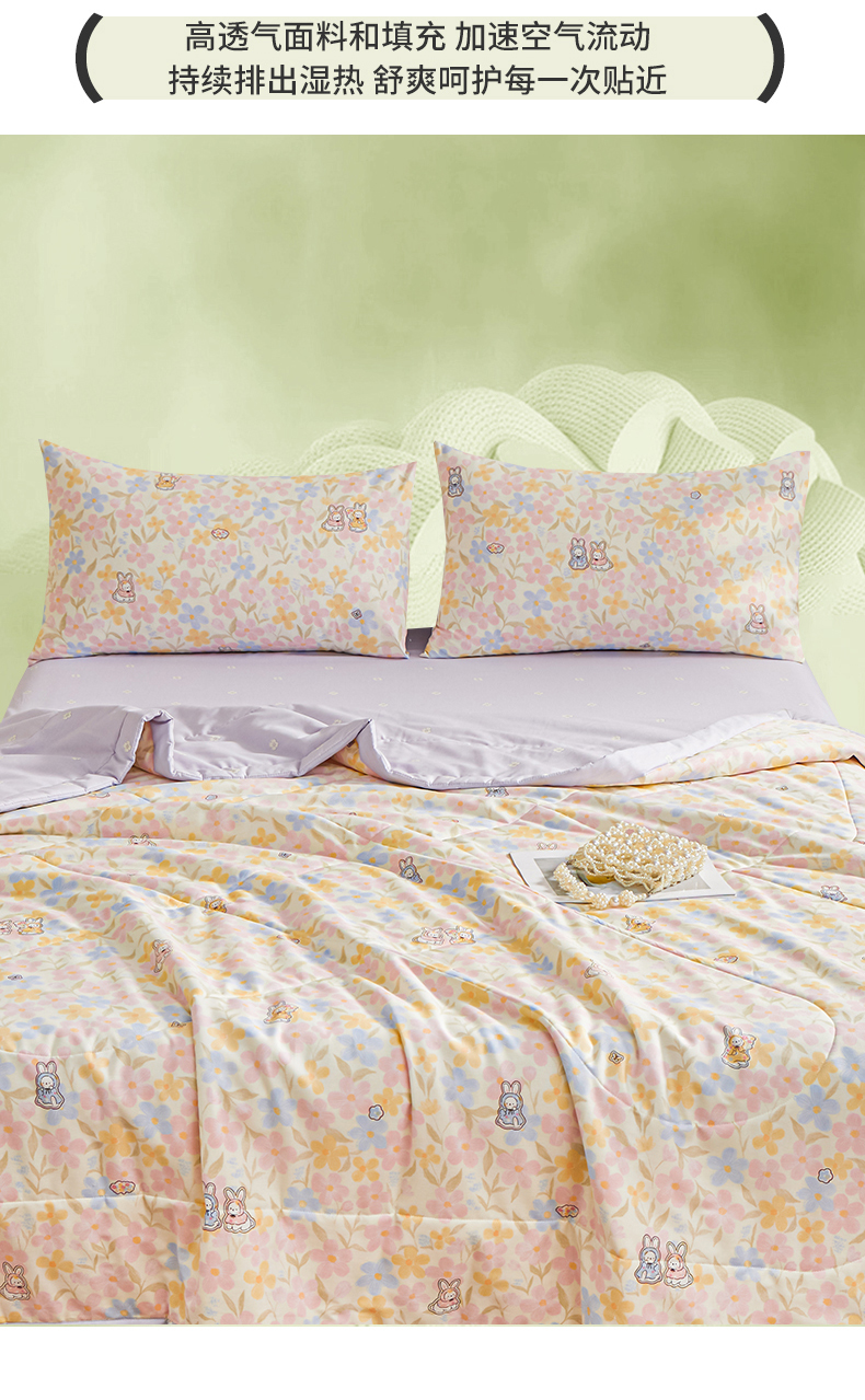 • 91家纺网 家纺一手货源 找家纺 小禹仔家纺 2026新款A类里外全棉印花棉花夏被 许愿兔
