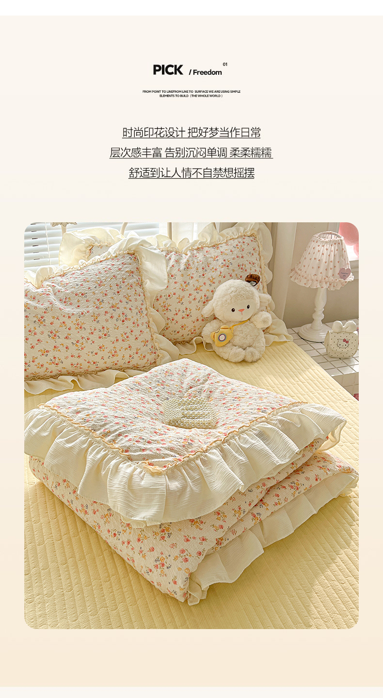 (总)富米莱(原臻工厂) 2026新款韩系古法韩国水洗棉云棉大布袋法式浪漫大花边床盖夏凉被床盖四件套,爆了樱桃,点点黑,点点红,浮世绘,花满满,浪漫玫瑰,马上有钱,玛奇朵,猫猫粉,猫猫蓝,莫松染,暮山紫,奶油兔,砚余墨,知春绿,紫兔兔