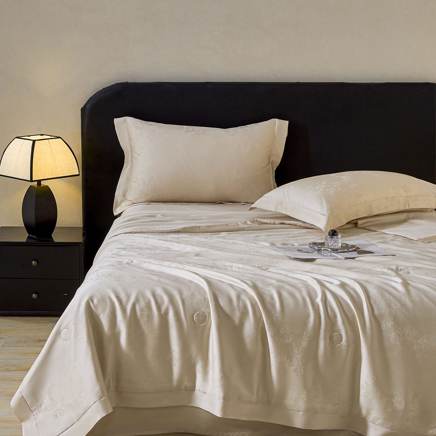 商品名称:久典家居 2026新款20%桑蚕丝+80%聚酯纤维提花夏被四件套-锦时系列 锦时-春