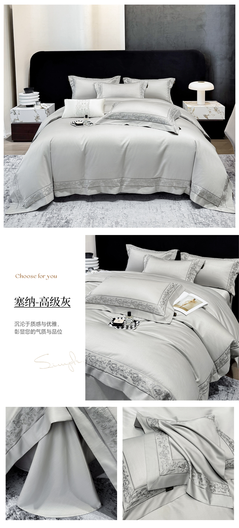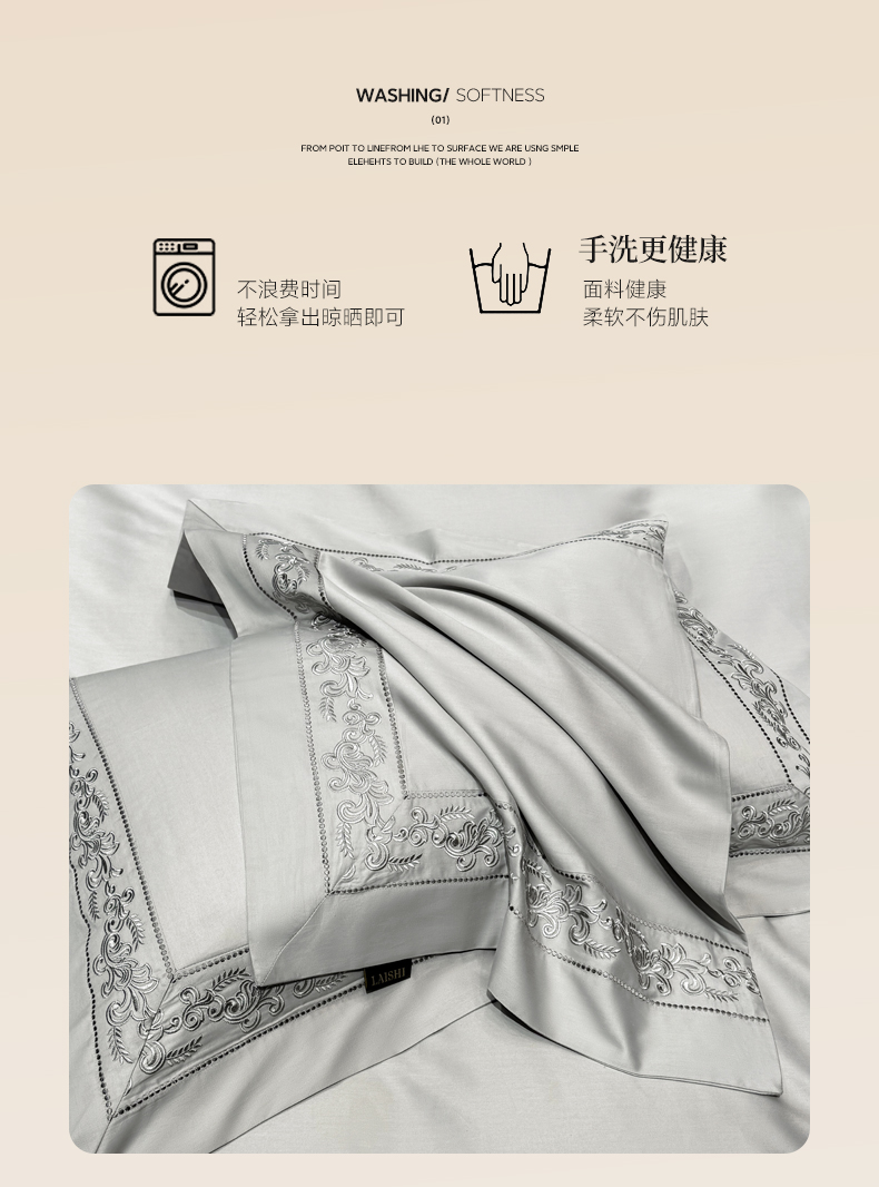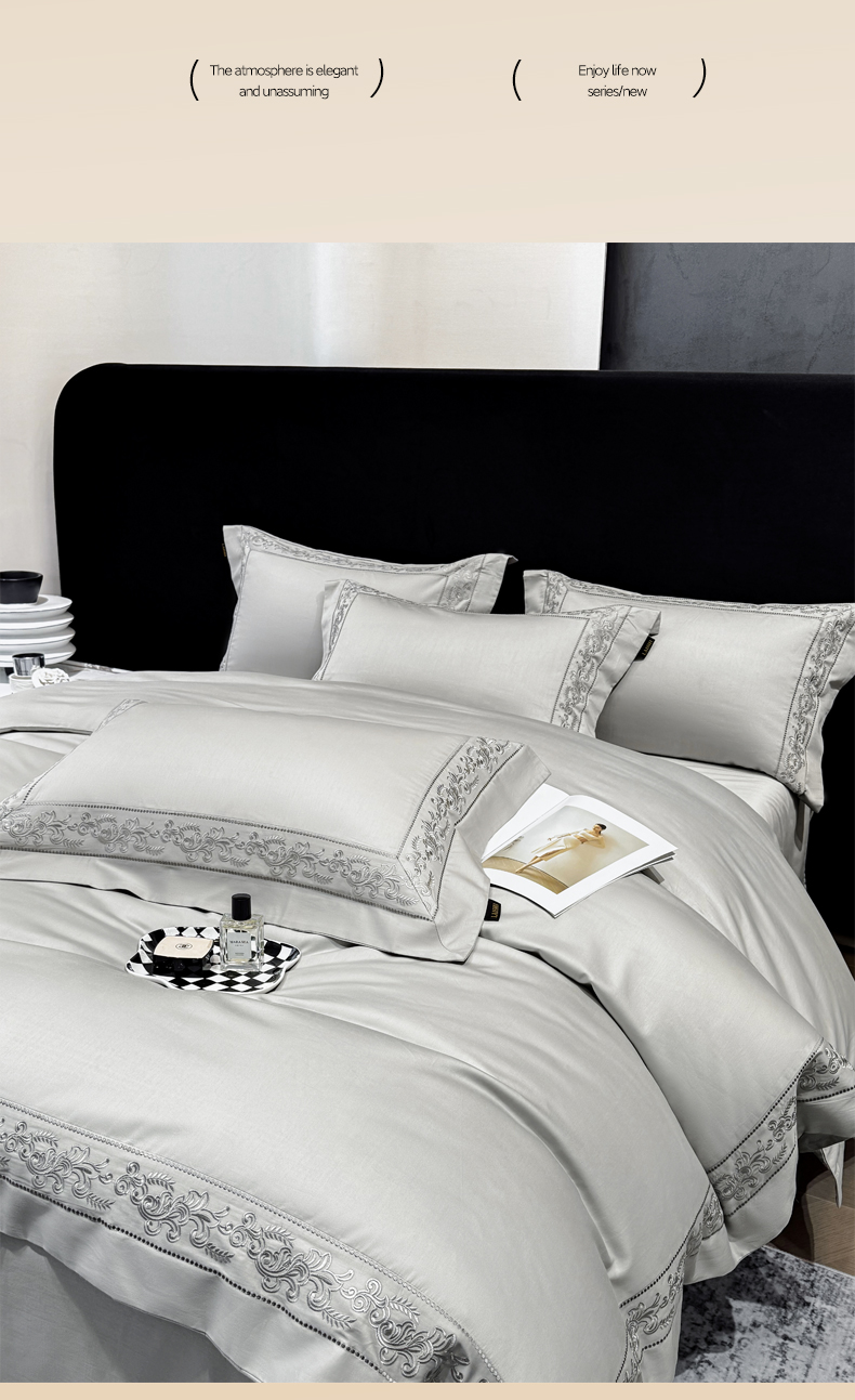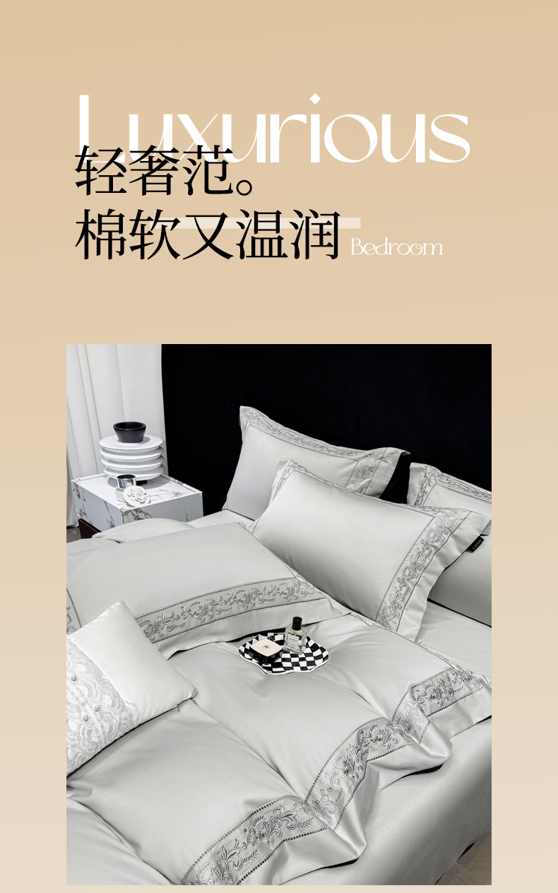 当前位置: 91家纺网 > 商品网购 > 床品套件 > 四件套 > 长绒棉四件套 > 莱势 2026新款100支长绒棉全棉纯棉50x50s埃及贡缎刺绣绣花四件套高端礼盒塞纳 塞纳-高级灰