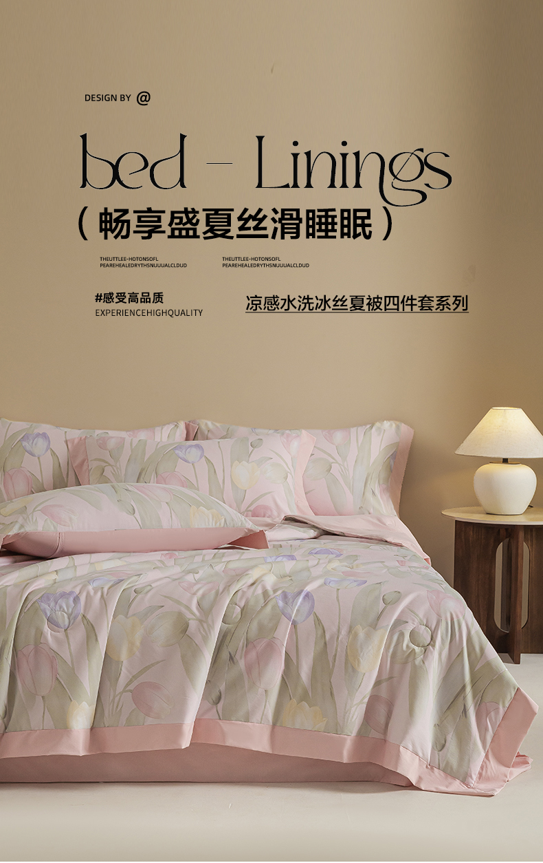• 91家纺网 家纺一手货源 找家纺 柒月家居 2026新款凉感冰丝夏被空调被夏凉被 郁金香玉
