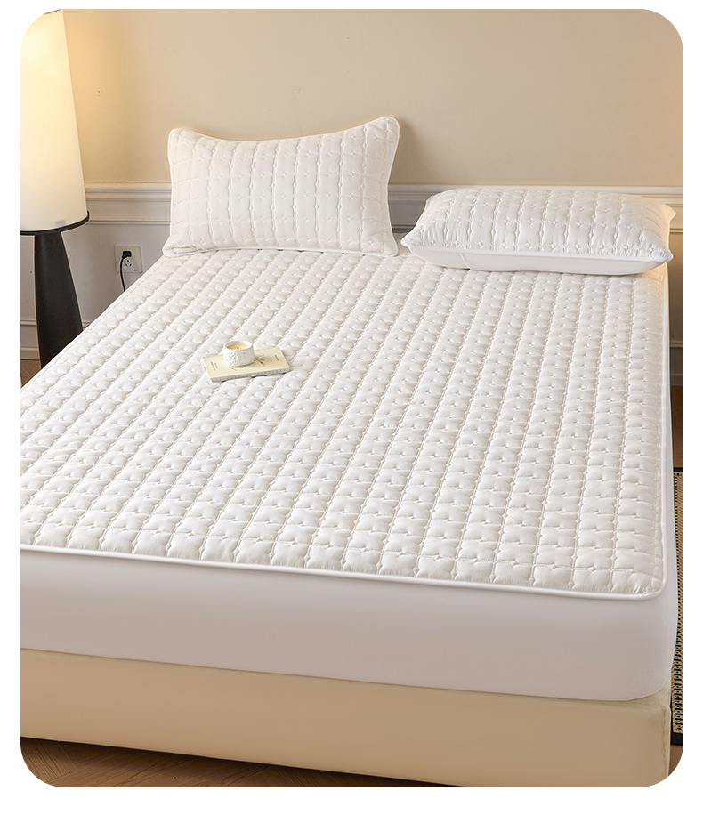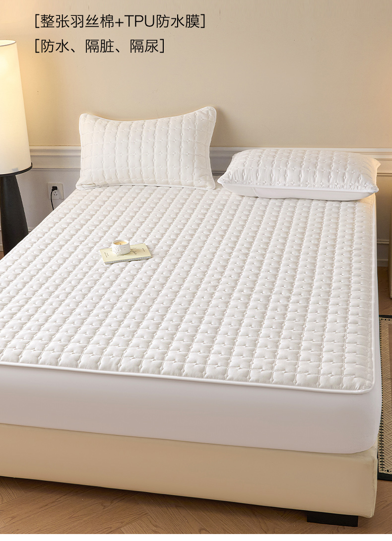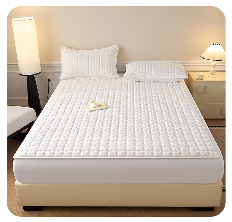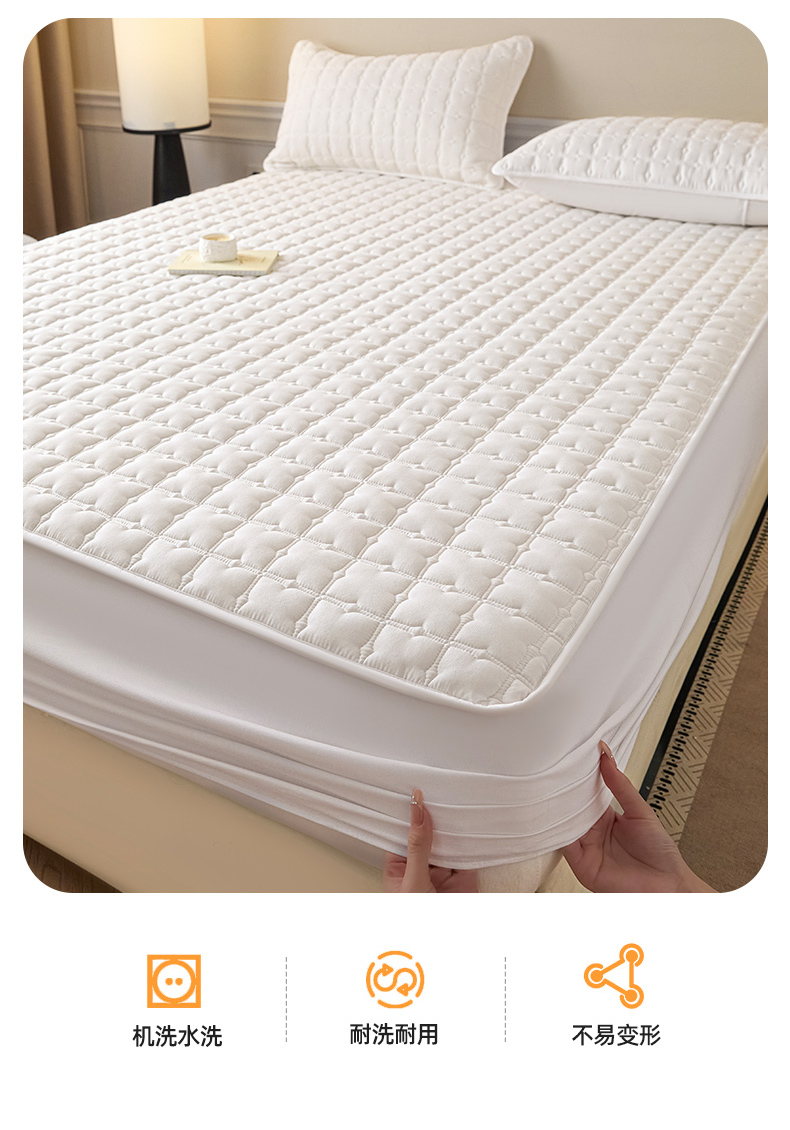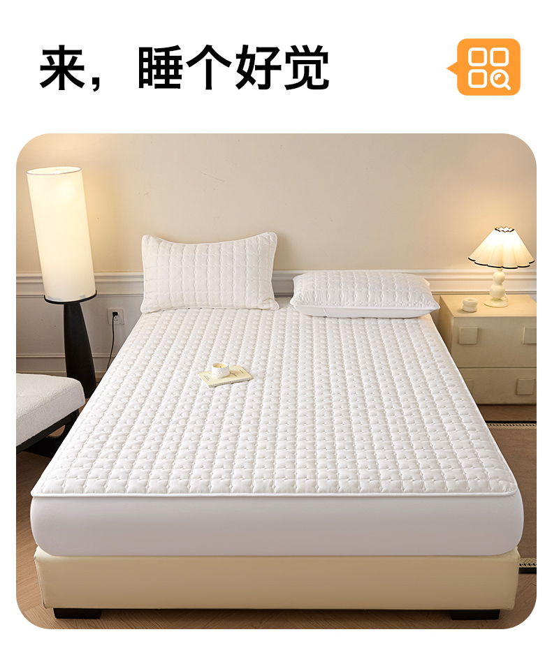 • 91家纺网 家纺一手货源 找家纺 优眠坊 2026新款夹棉床笠/防水床笠   床笠三件套 格趣-白色-防水款