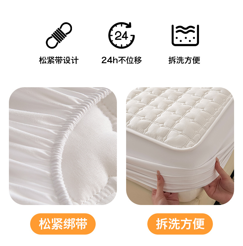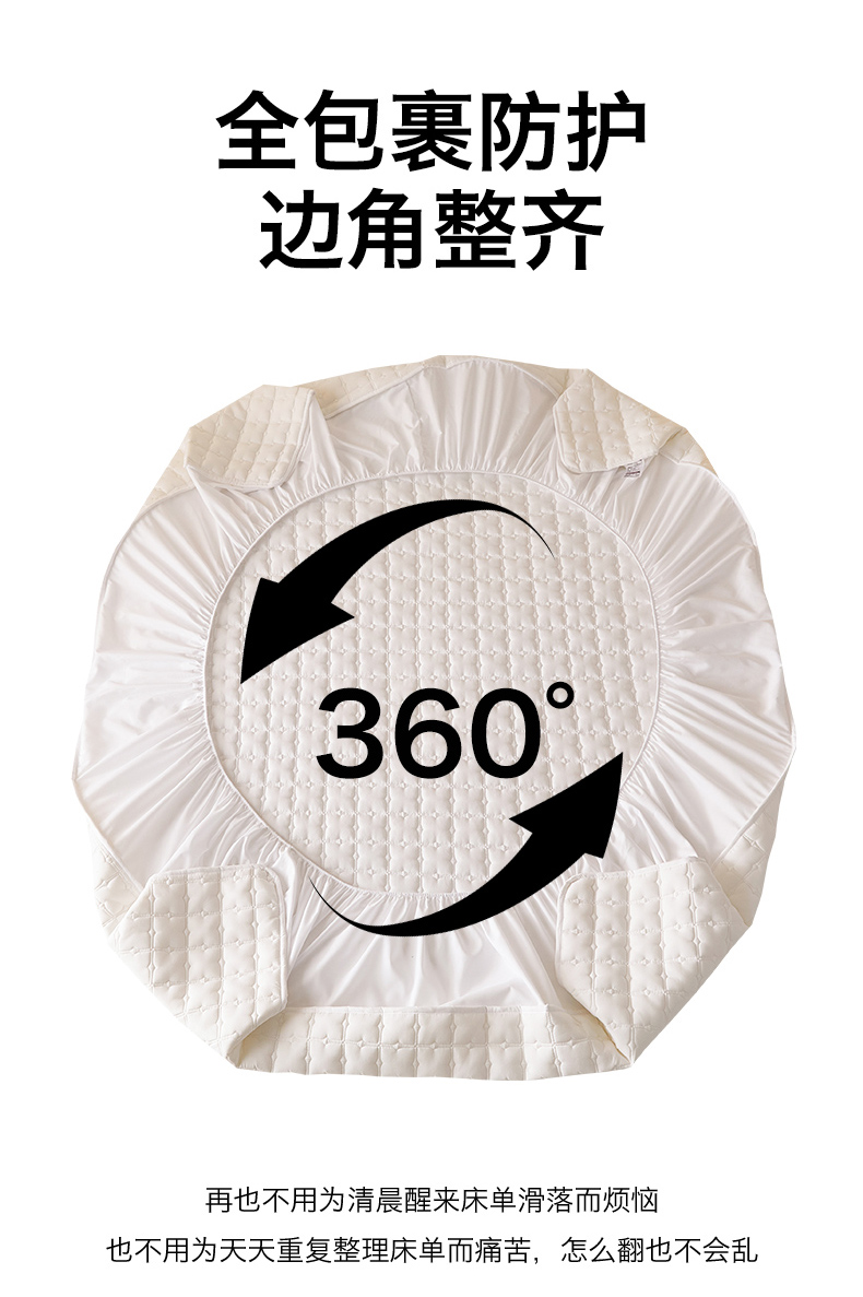 优眠坊 2026新款夹棉床笠/防水床笠 床笠三件套 格趣-白色-防水款