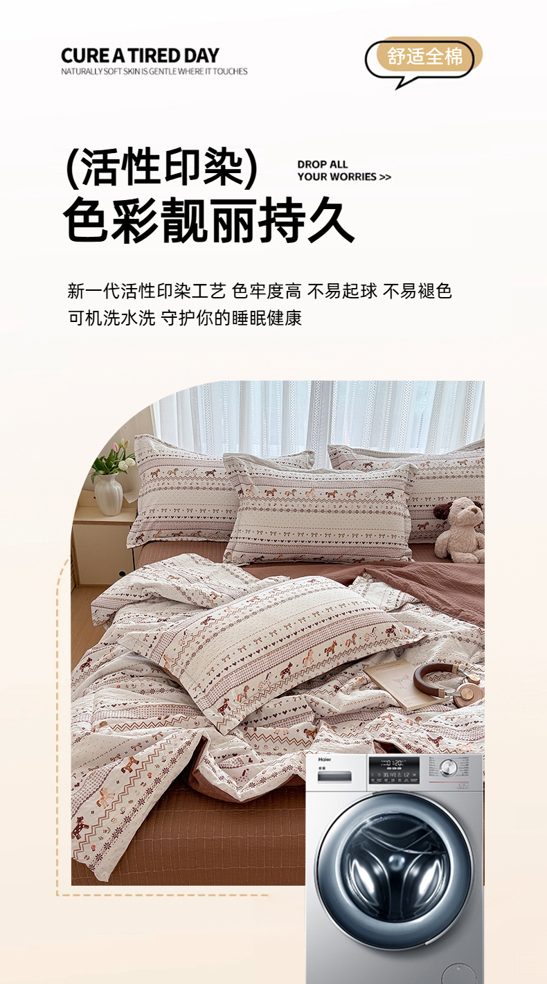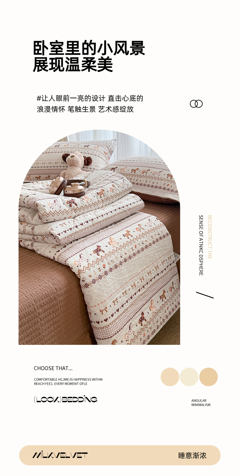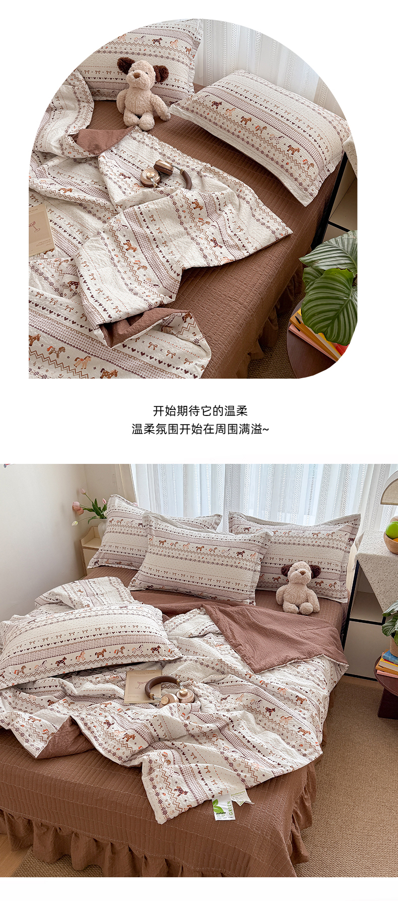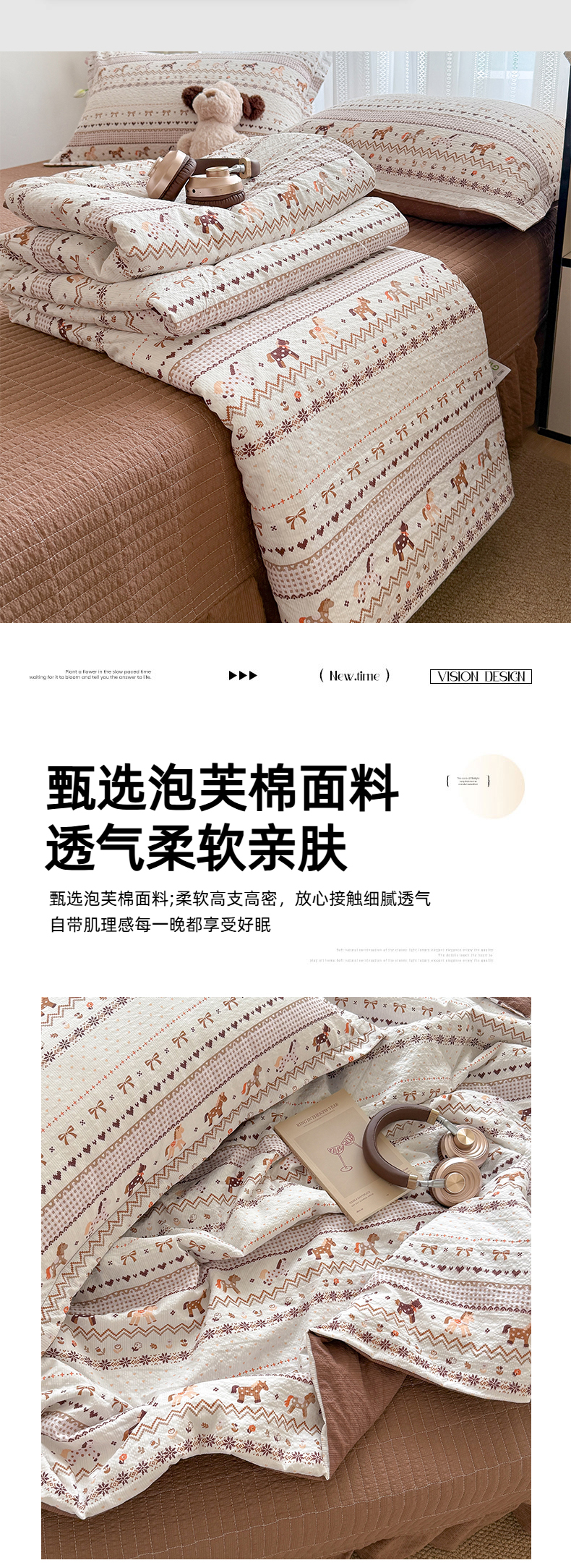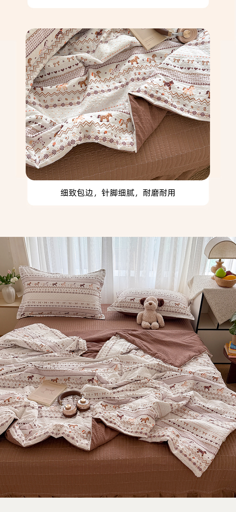 (总)梵希雅 2026新款A类贝壳秀费尔岛风泡芙棉夏被空调被四件套,红棕萌犬-夏被,焦糖木马-夏被,甜粉摇马-夏被,雾蓝自由马-夏被,棕蓝麋鹿-夏被