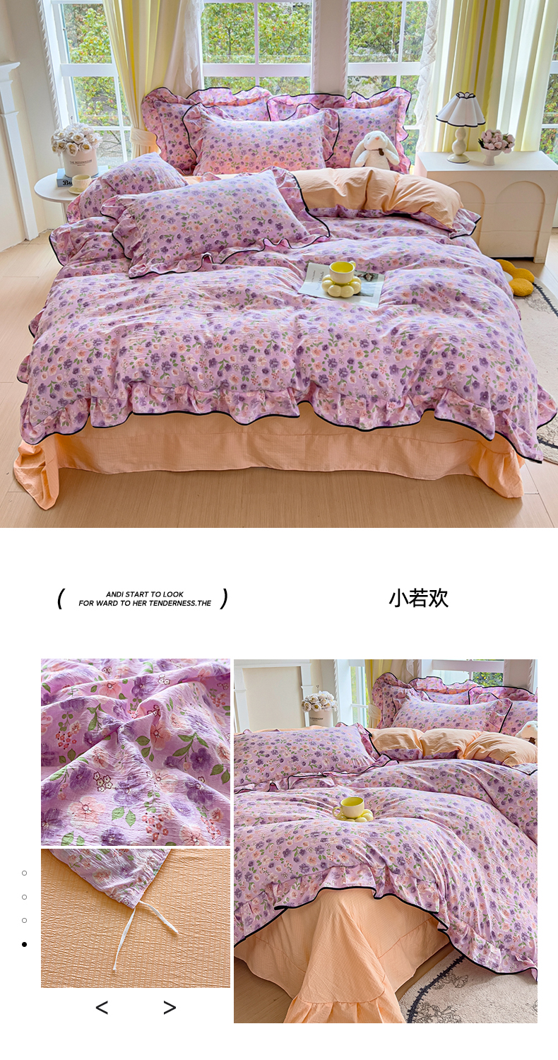 当前位置: 91家纺网 > 商品网购 > 床品套件 > 四件套 > 其它四件套 > 找底底家纺 2026新款A类泡泡棉双层纱四件套花边夏被四件套 萌宠拾光
