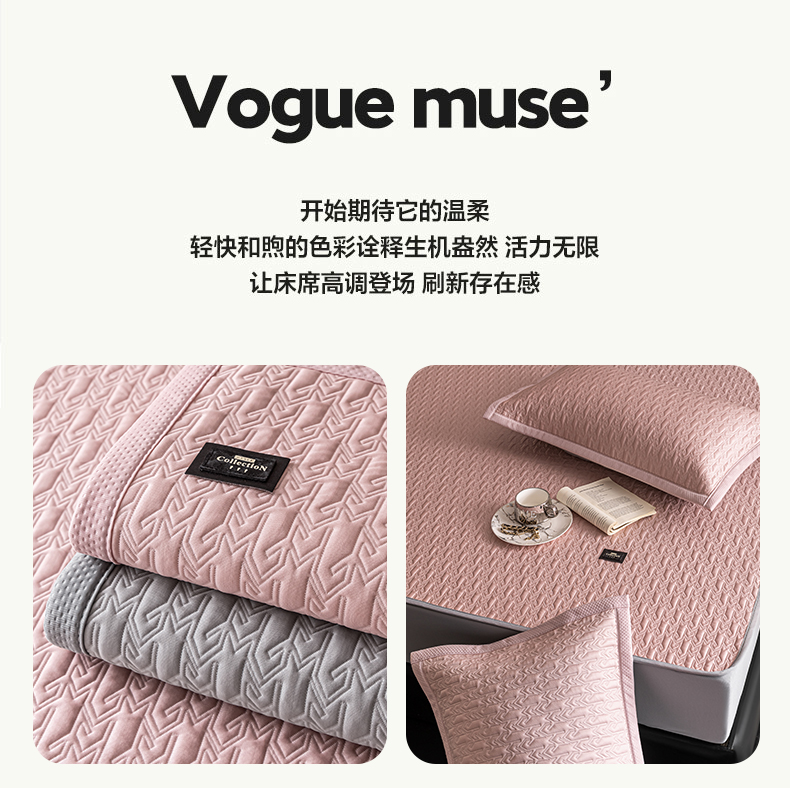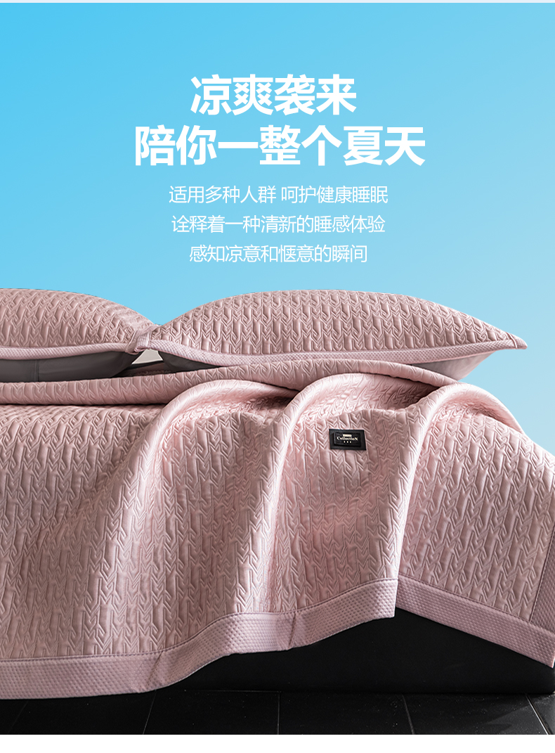 慕木家纺 2026新款A类复合三明治PE乙纶提花冰豆豆凉席床笠海之恋系列(提供买家秀) 海之恋-粉床席款
