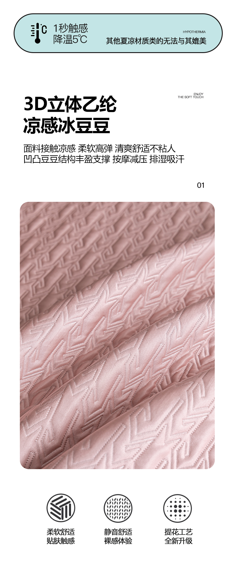 • 91家纺网 家纺一手货源 找家纺 慕木家纺 2026新款A类复合三明治PE乙纶提花冰豆豆凉席床笠海之恋系列(提供买家秀) 海之恋-粉床席款