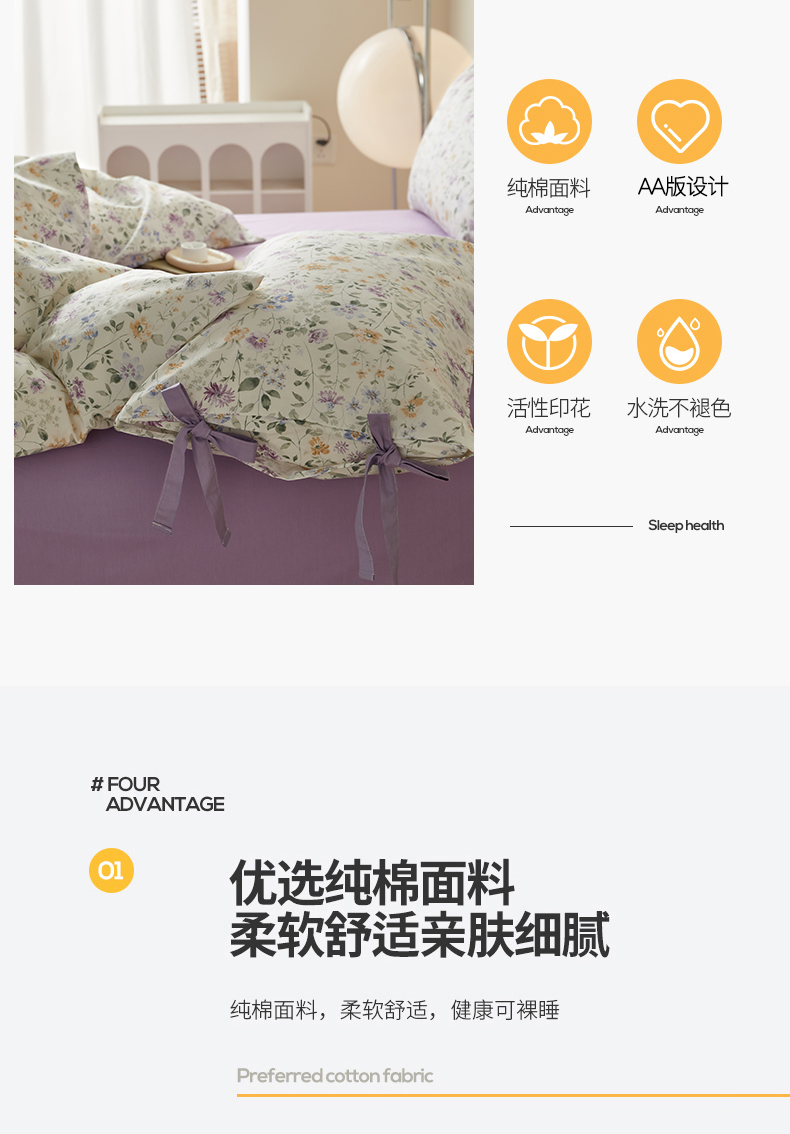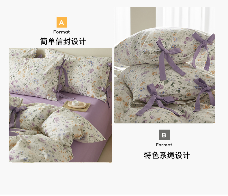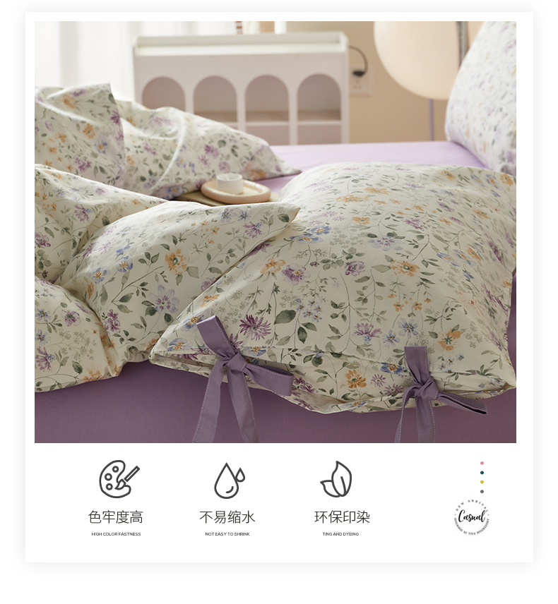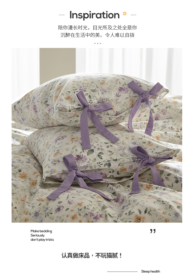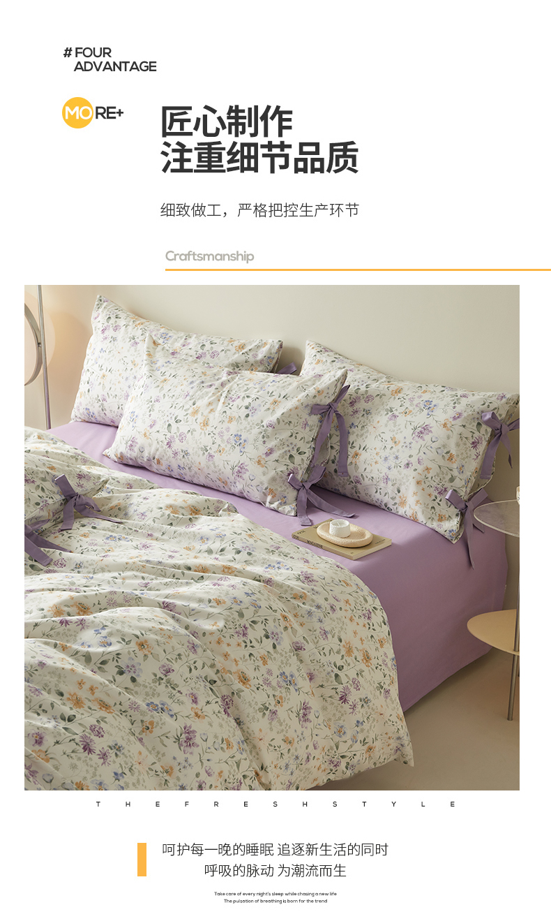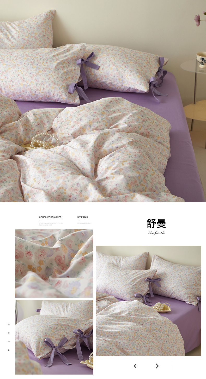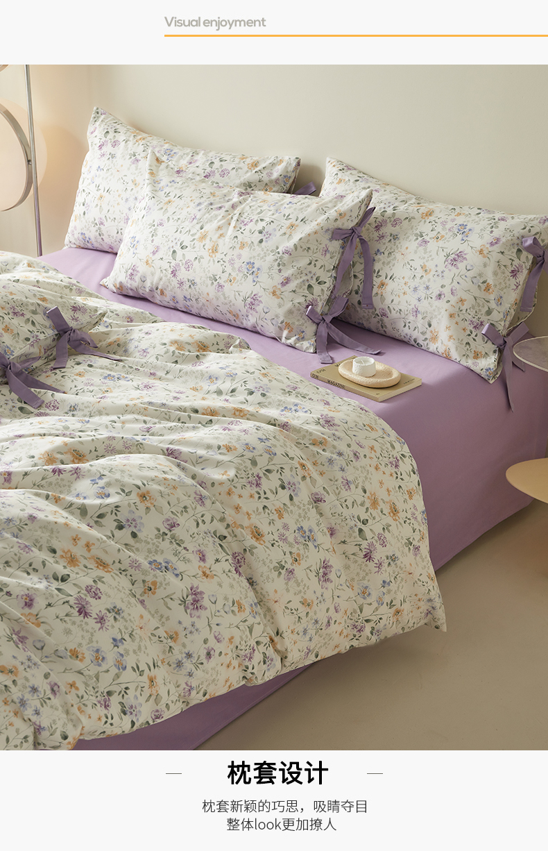 商品名称:绫韵家纺 2026新款春夏13372全棉蝴蝶结四件套系列 紫霞