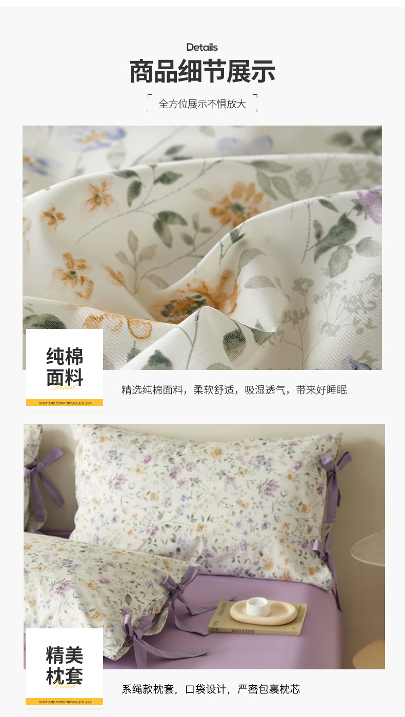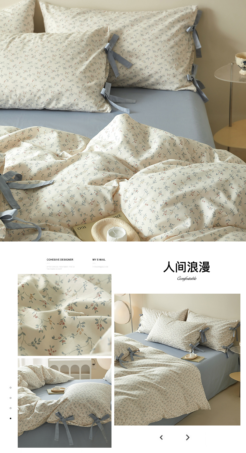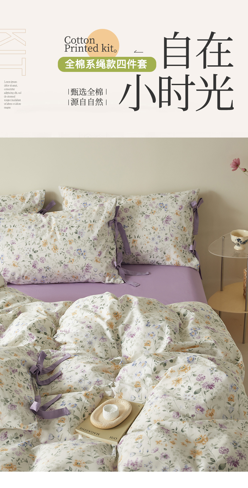 (总)绫韵家纺 2026春夏新款13372全棉ins小碎花纯棉田园风床单床笠四件套系绳蝴蝶结系列,贝贝利亚,沉香,丹恒,花田喜事