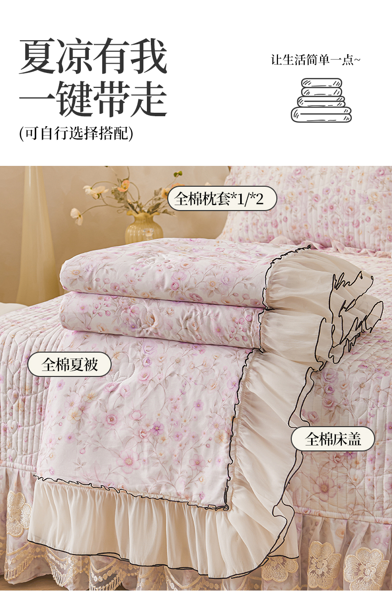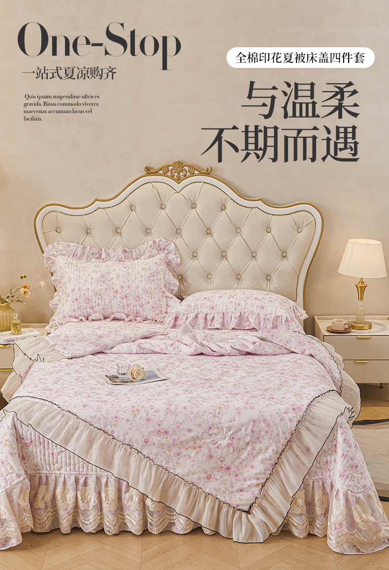 宜凡家纺 2026新款全棉数码印花夏被床盖四件套②号系列 恬静