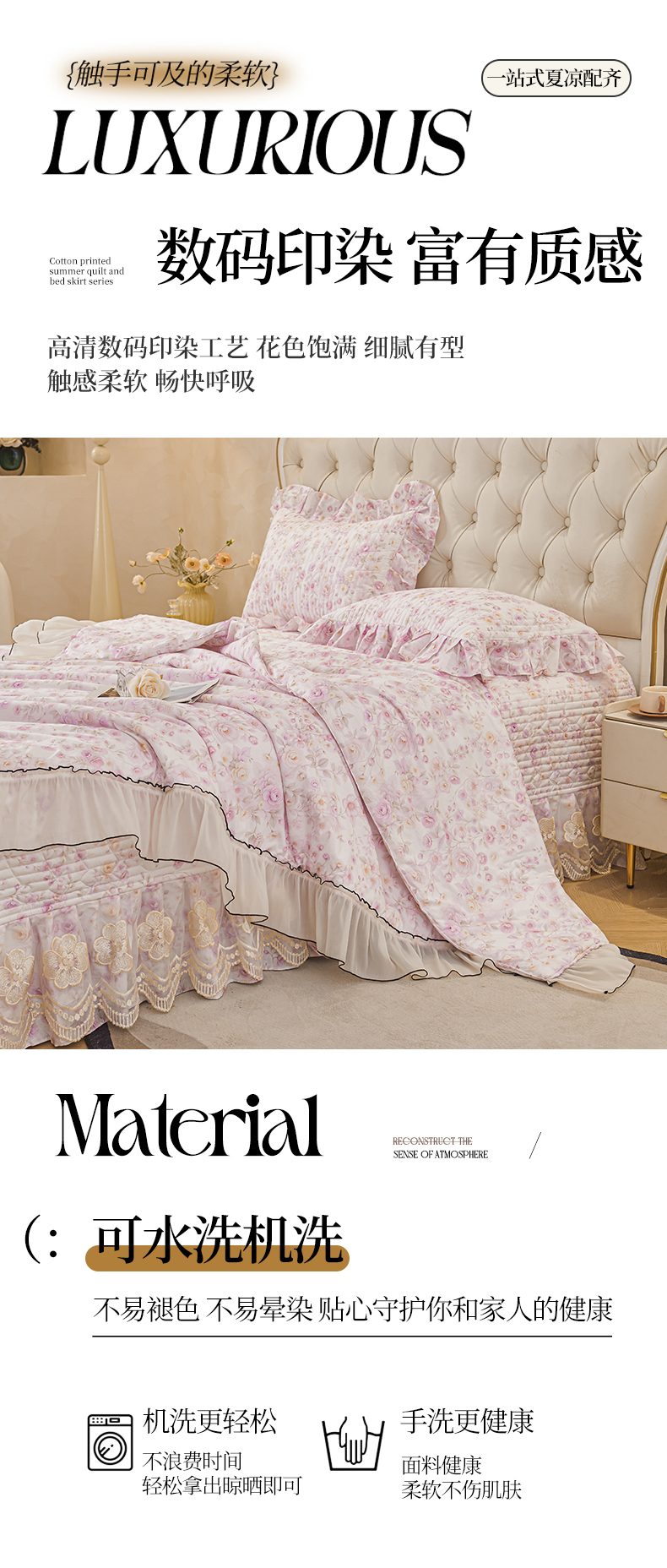 (总)宜凡家纺 2026新款全棉数码印花夏被床裙四件套②号系列,春旭,光之羽 紫,禾暮,澜晚,茜野,恬静
