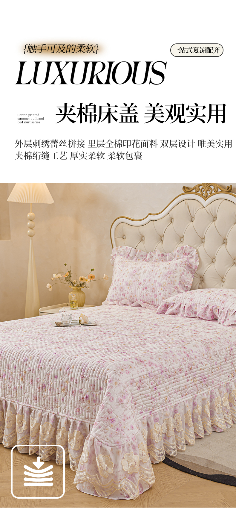 (总)宜凡家纺 2026新款全棉数码印花单层床裙②号系列三件套,春旭,光之羽-紫,禾暮,澜晚,茜野,恬静