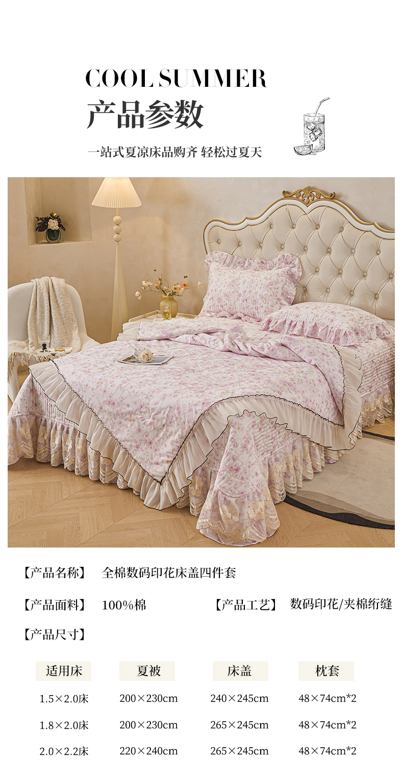 商品名称:宜凡家纺 2026新款全棉数码印花夏被床盖四件套②号系列 恬静