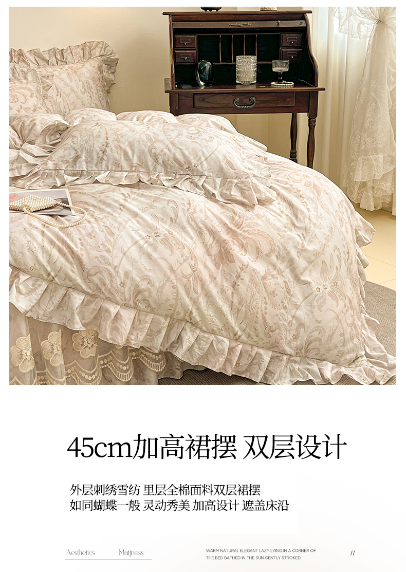 当前位置: 91家纺网 > 商品网购 > 床品套件 > 四件套 > 全棉普通四件套 > 宜凡家纺 2026新款全棉数码印花单层床裙②号系列四件套 禾暮