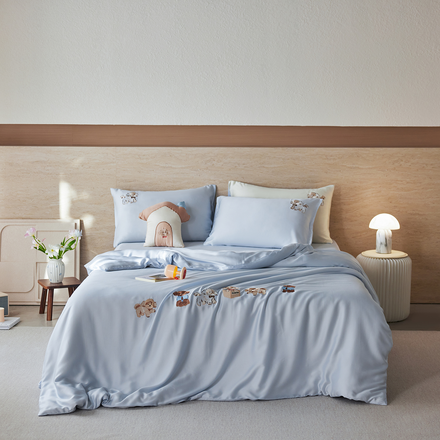 当前位置: 91家纺网 > 商品网购 > 床品套件 > 四件套 > 其它四件套 > 风向标家纺 2026新款兰精天丝绣花四件套-萌宠系列 奶蓝汪团