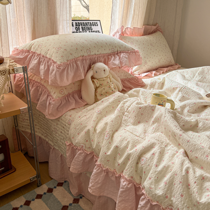 当前位置: 91家纺网 > 商品网购 > 床品套件 > 四件套 > 夏被四件套 > 梵希雅 2026新款床盖款花边夏被四件套 典雅