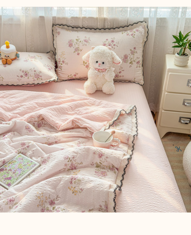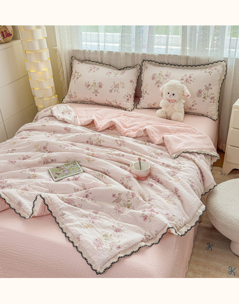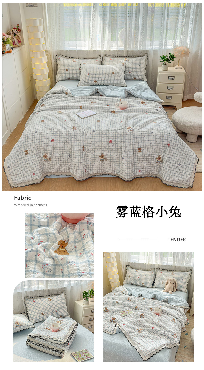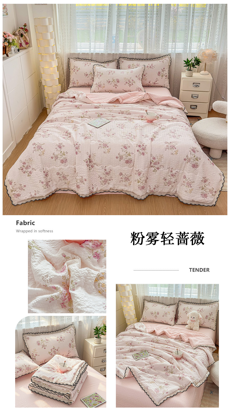 (总)赫本家纺 2026新款全棉镂空花边云感印花双层纱夏被四件套,粉雾轻蔷薇,海盐蝴蝶结,灰糖花房,灰糖心事,焦糖奶芙,绿野精灵,暖茶花园,青雾花野,晴朗紫,软萌小马,桃桃甜心,雾蓝格小兔