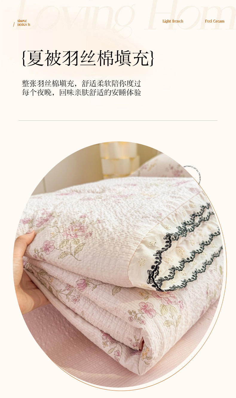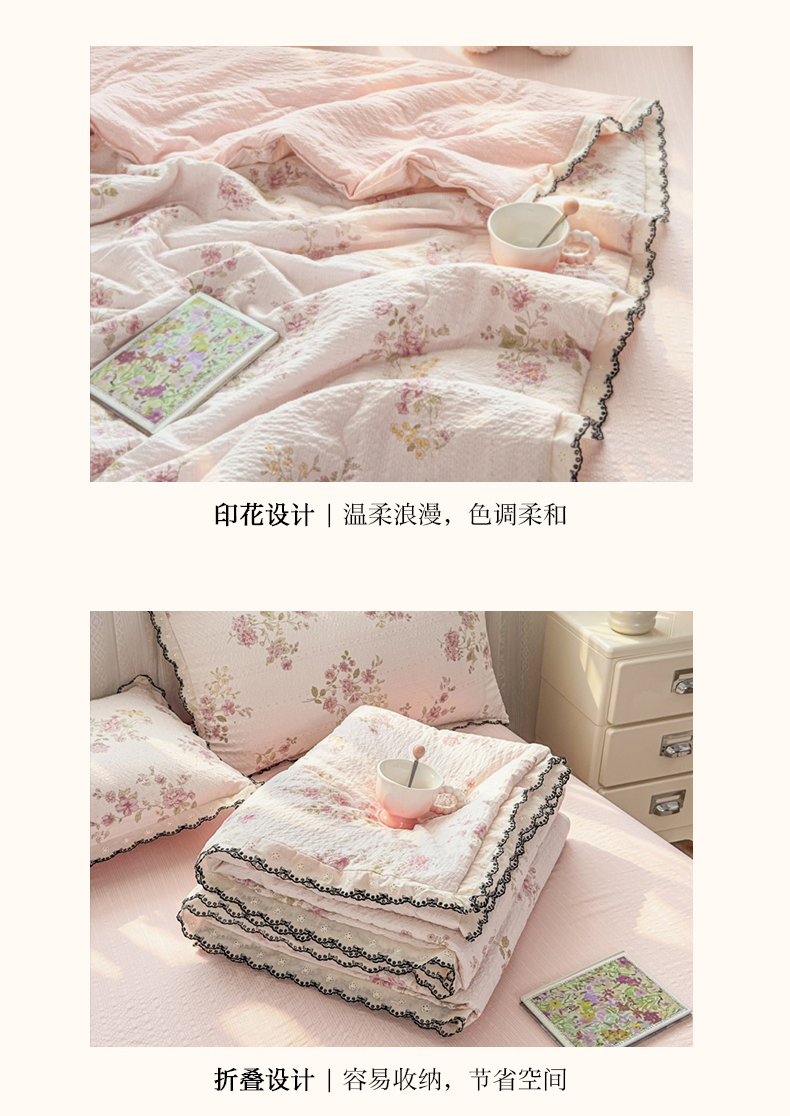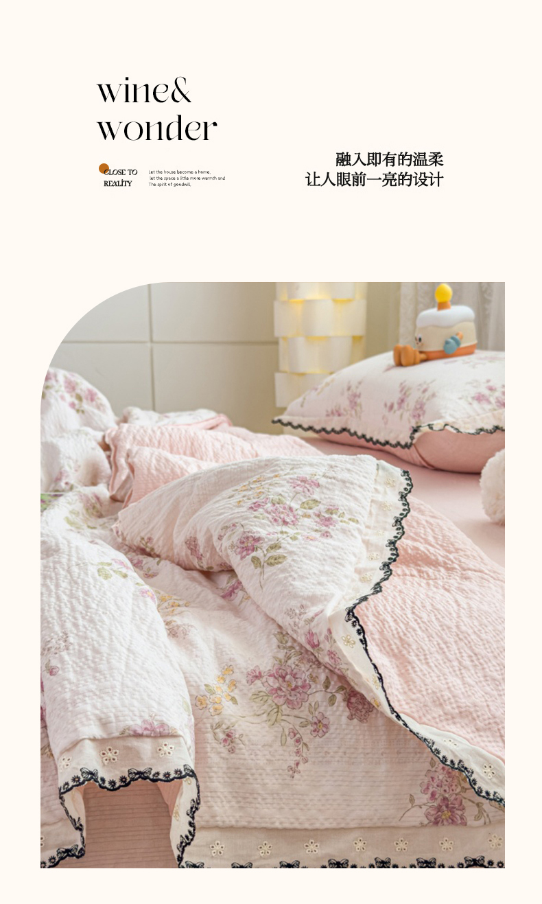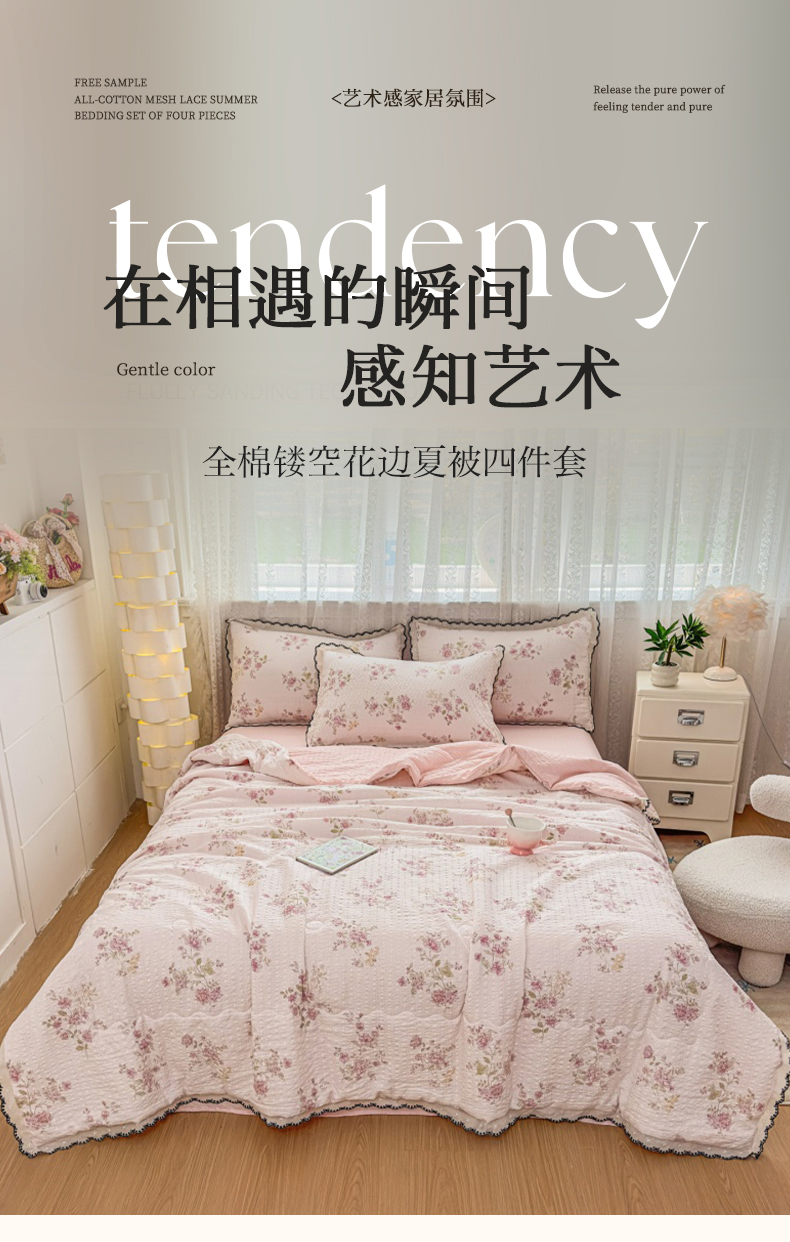 商品名称:(总)赫本家纺 2026新款全棉镂空花边云感印花双层纱夏被四件套