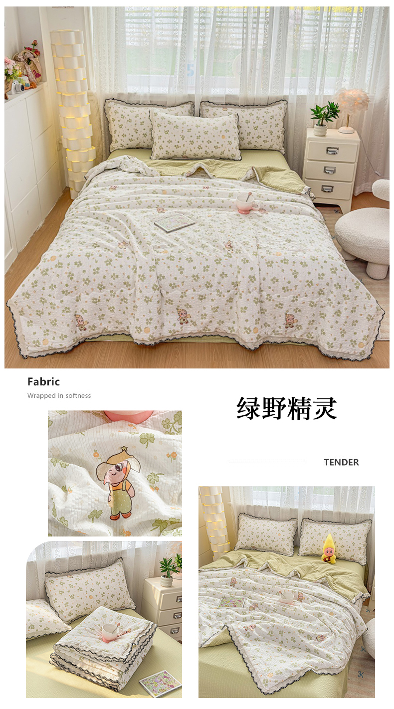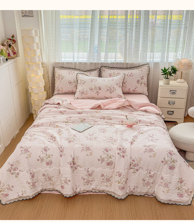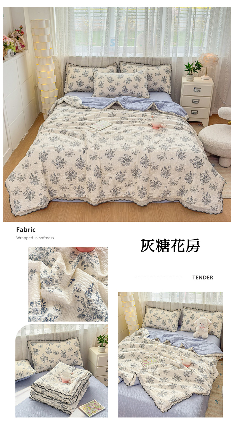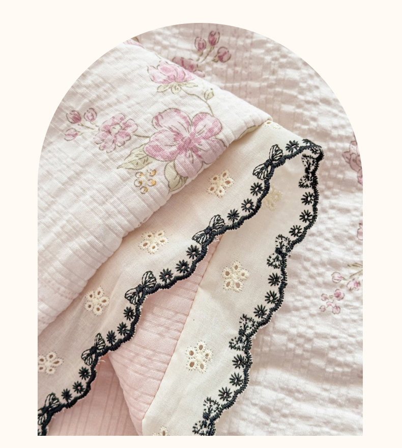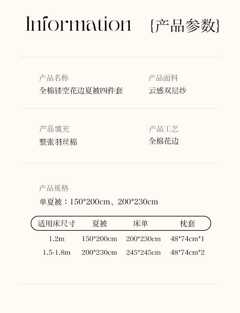 商品名称:(总)赫本家纺 2026新款全棉镂空花边云感印花双层纱夏被四件套