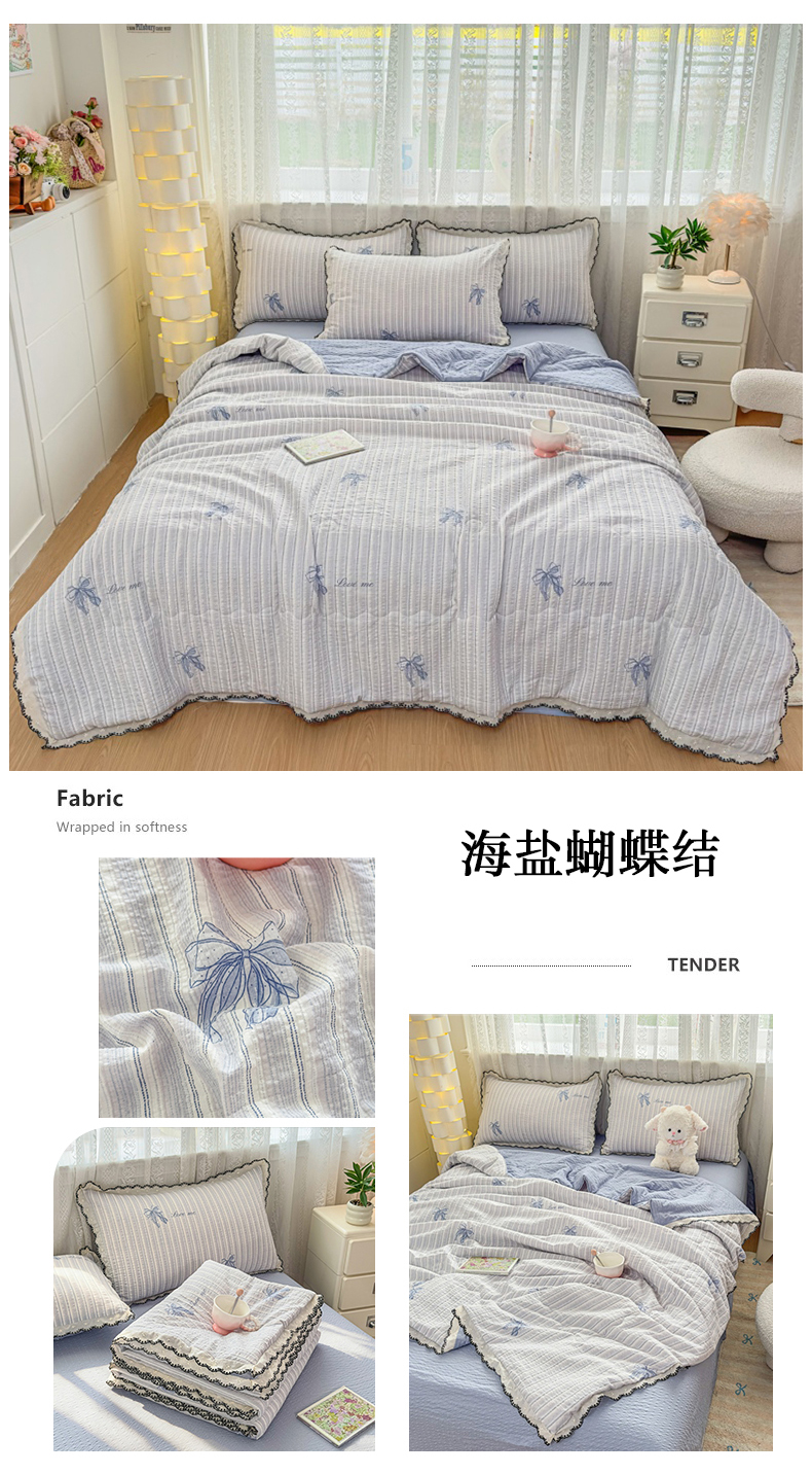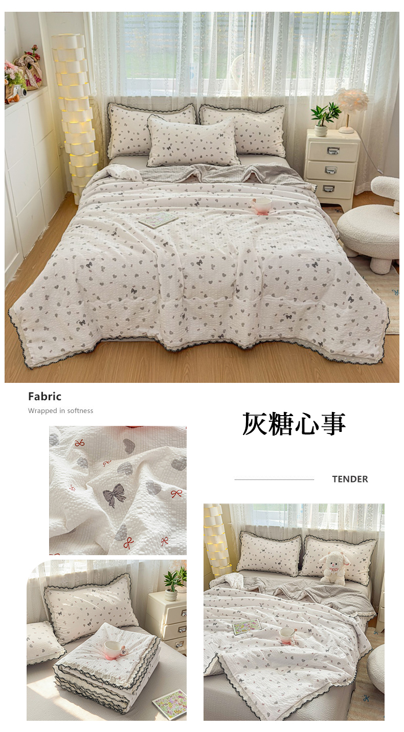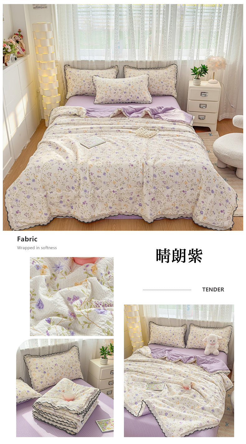 (总)赫本家纺2025新款泡泡纱夏被 夏被四件套,粉咖,嫩黄,嫩绿,少女粉,水绿,微蓝,雾紫,烟灰