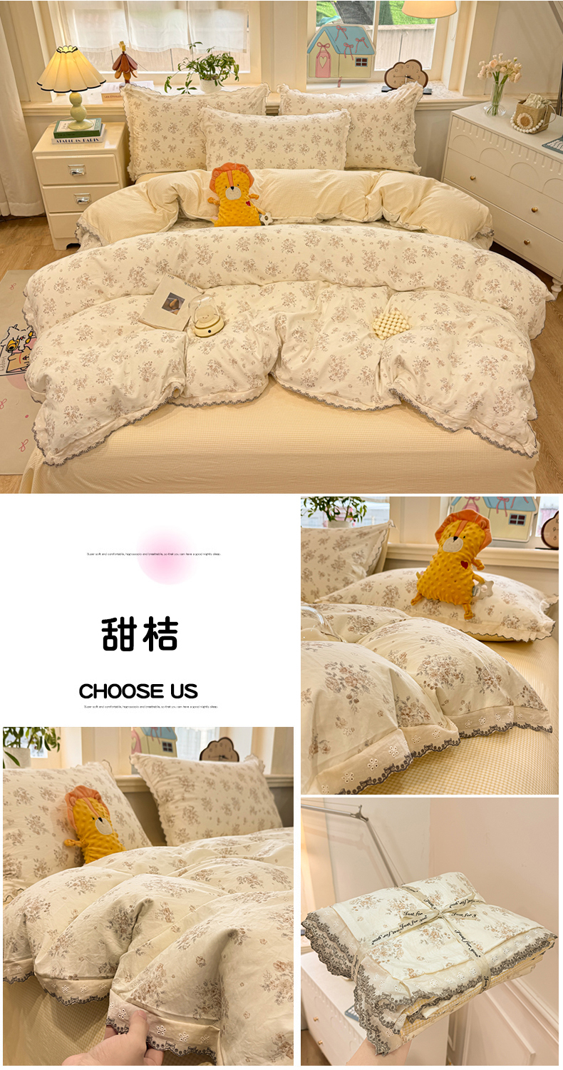 商品名称:漫仙阁家纺 2026新款云感泡芙棉四件套 甜桔