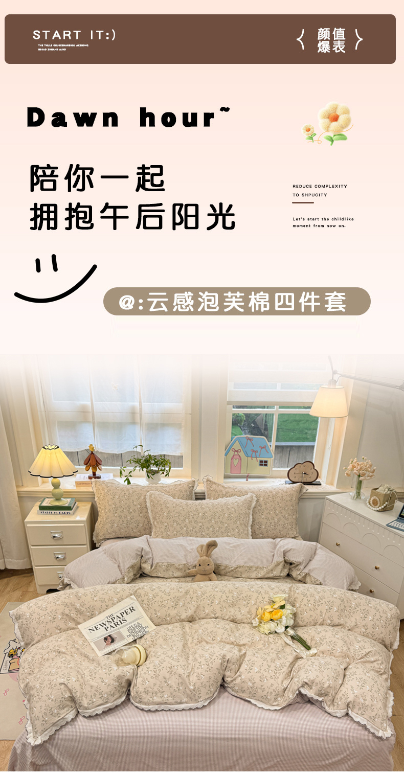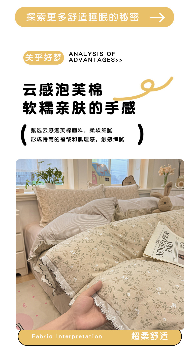 漫仙阁家纺 2026新款云感泡芙棉四件套 悦枝