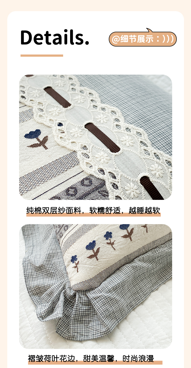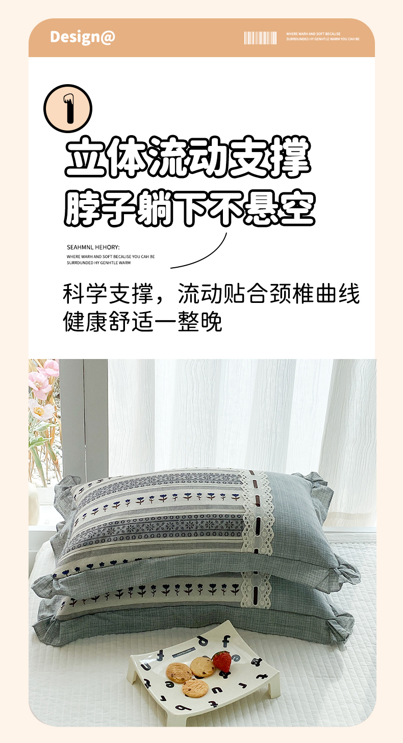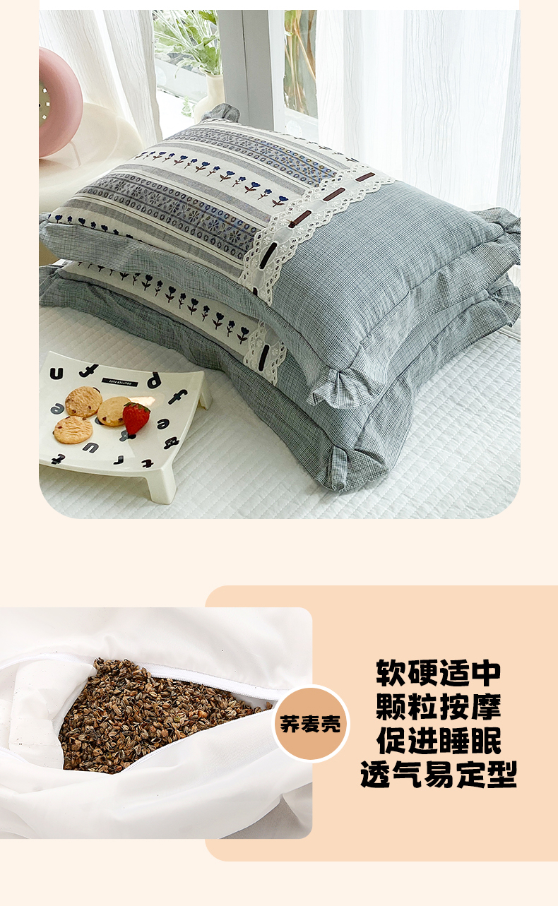 当前位置: 91家纺网 > 商品网购 > 枕头/枕芯/保健枕/颈椎枕 > 枕头枕芯 > (总)梦叶草 2026新款全棉双层纱花边荞麦枕公主风荞麦枕头