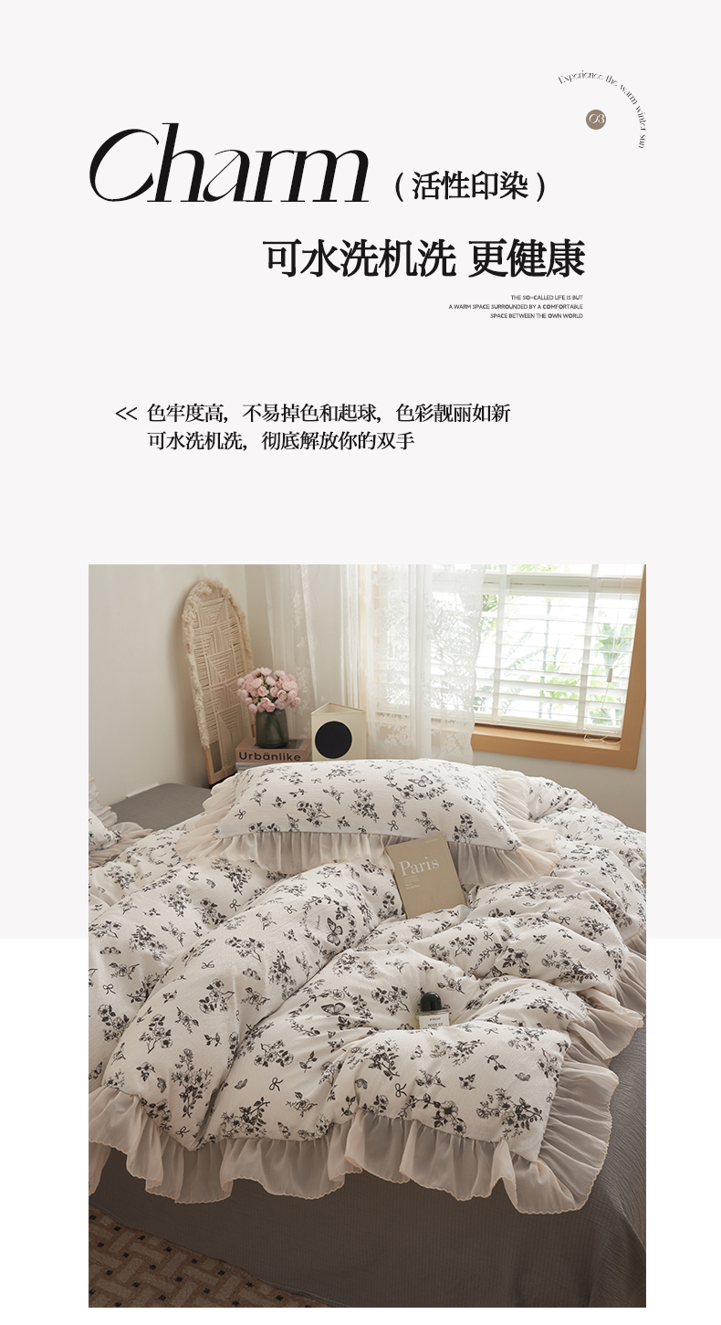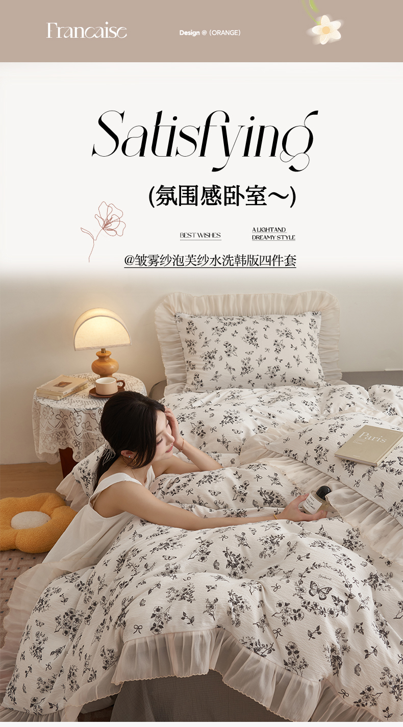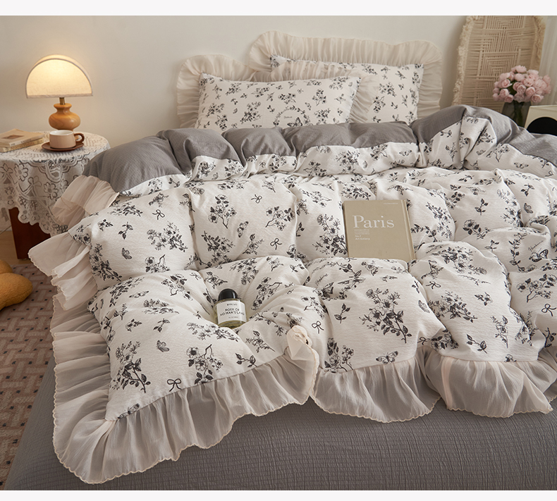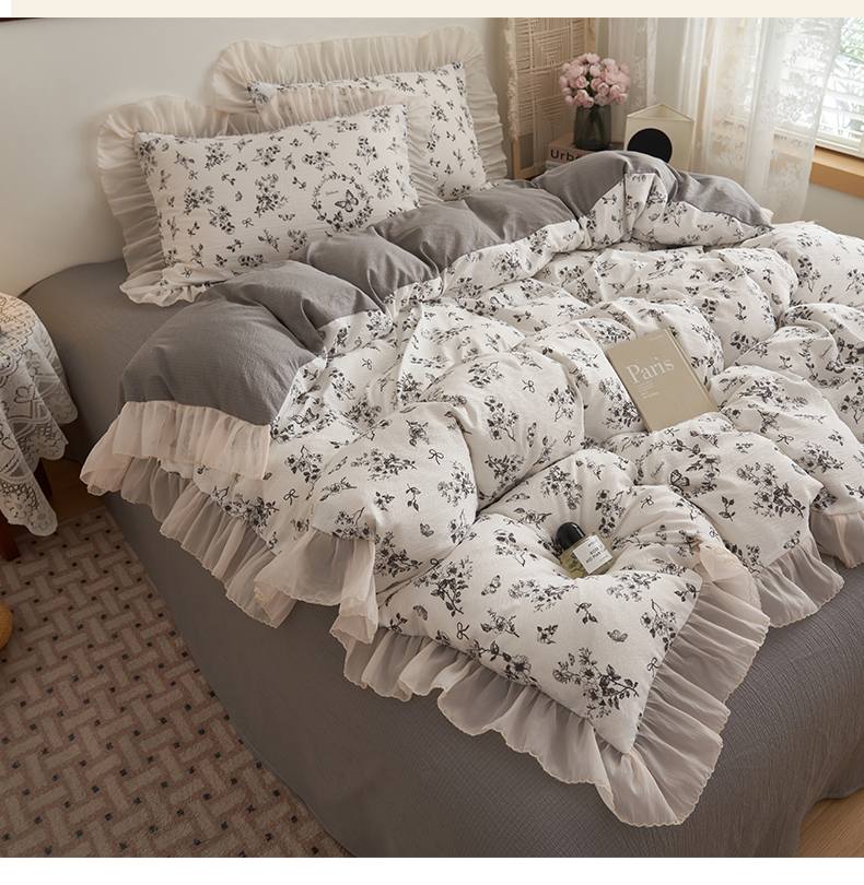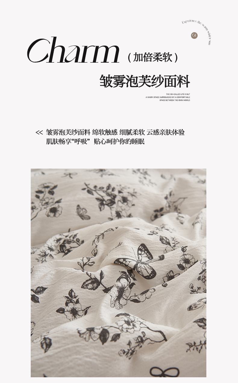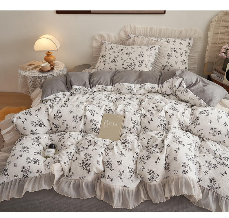 当前位置: 91家纺网 > 商品网购 > 床品套件 > 四件套 > 其它四件套 > 晨曦家纺 2026春夏新款皱雾纱泡芙纱水洗少女ins风韩版四件套 素墨蝶语
