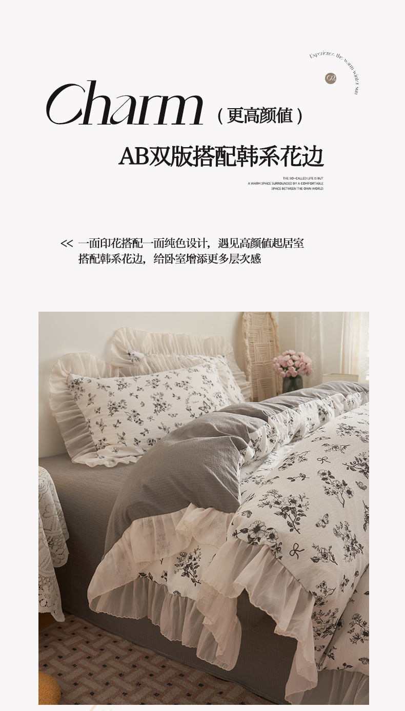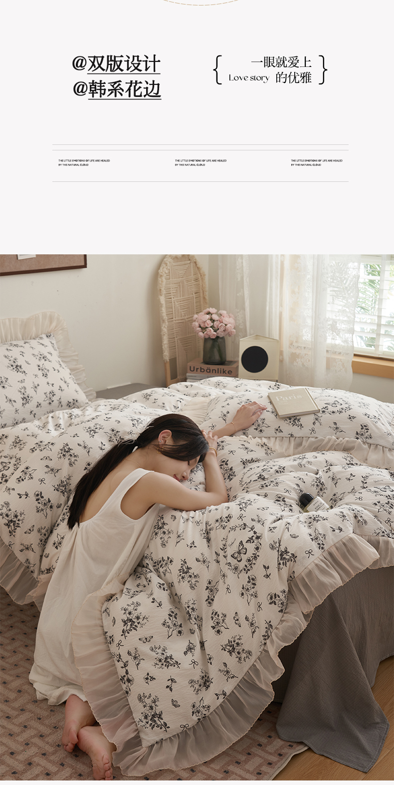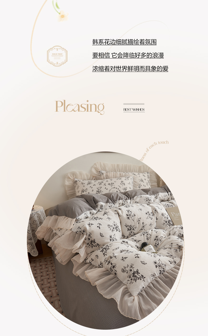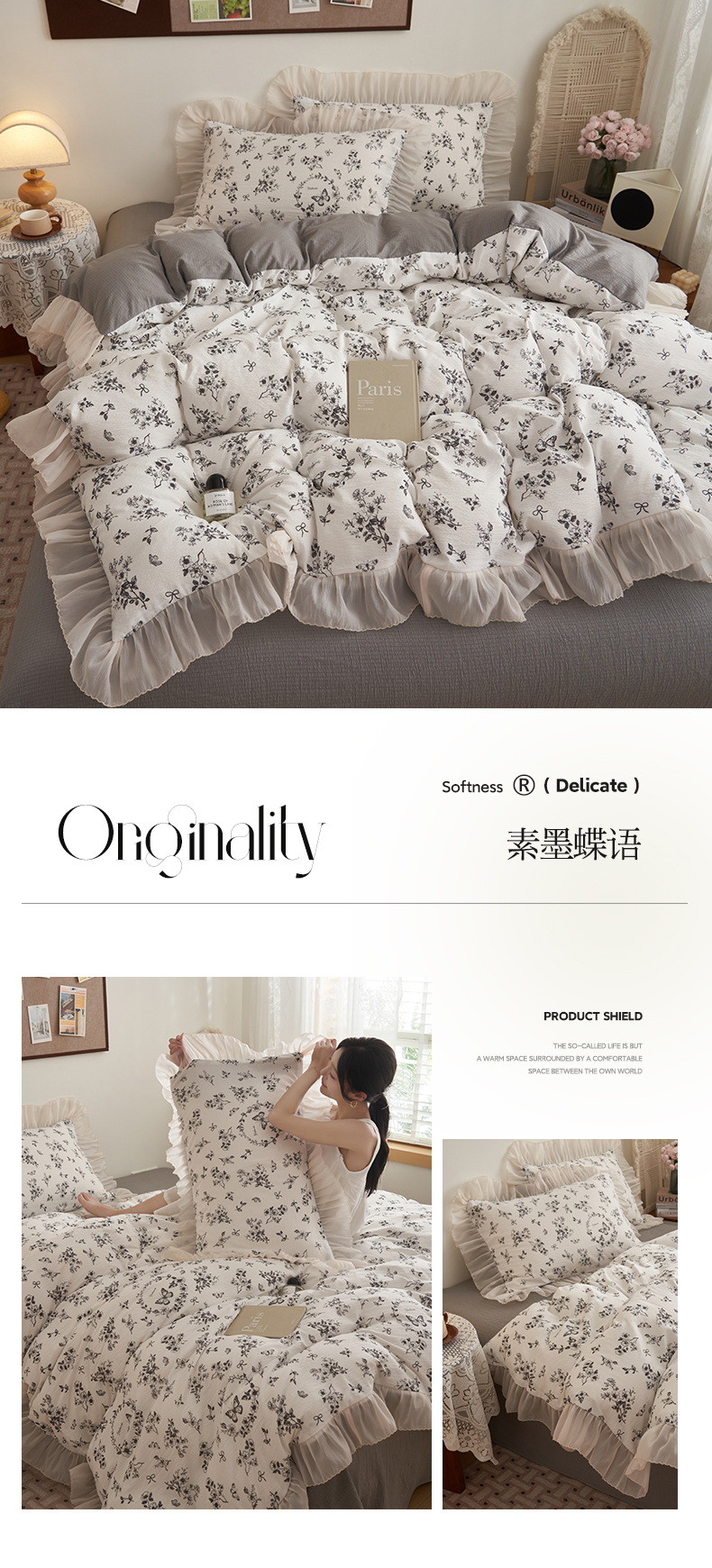 当前位置: 91家纺网 > 商品网购 > 床品套件 > 四件套 > 其它四件套 > 晨曦家纺 2026春夏新款皱雾纱泡芙纱水洗少女ins风韩版四件套 素墨蝶语