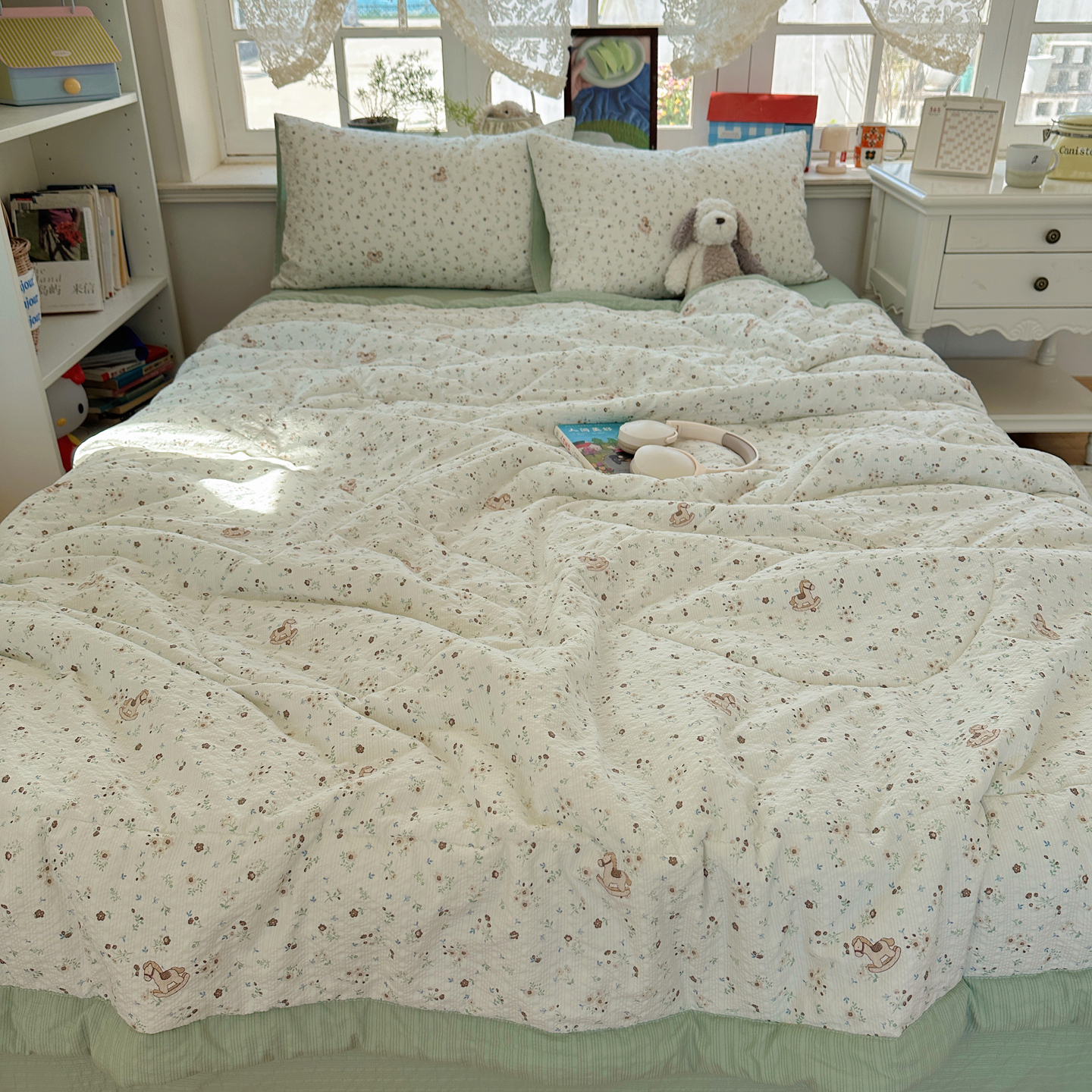 • 91家纺网 家纺一手货源 找家纺 (总)梵克保罗 2026春夏新款10A抗菌毛球花边皱皱纱夏被单夏被空调被夏被四件套,花乡小熊,蓝星狗,乐趣,萌兔花园,沐春,素锦纹,雾格马