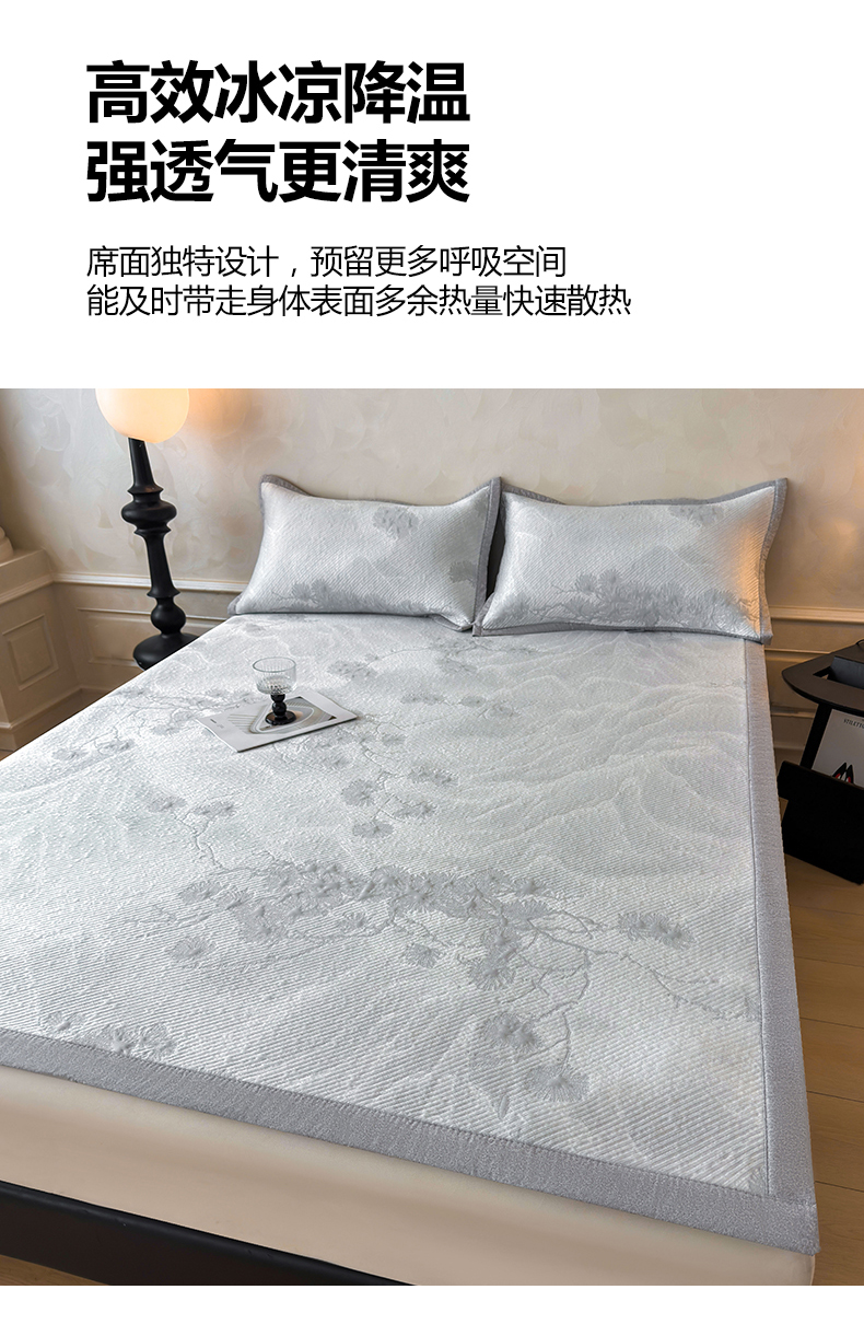 当前位置: 91家纺网 > 商品网购 > 床上用品 > 凉席 > 其他凉席 > 慕木家纺 2026新款高端PE乙纶双面提花560克冰豆豆凉席迎客松系列(提供买家秀) 迎客松-绿床笠款