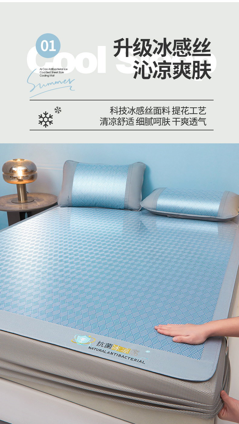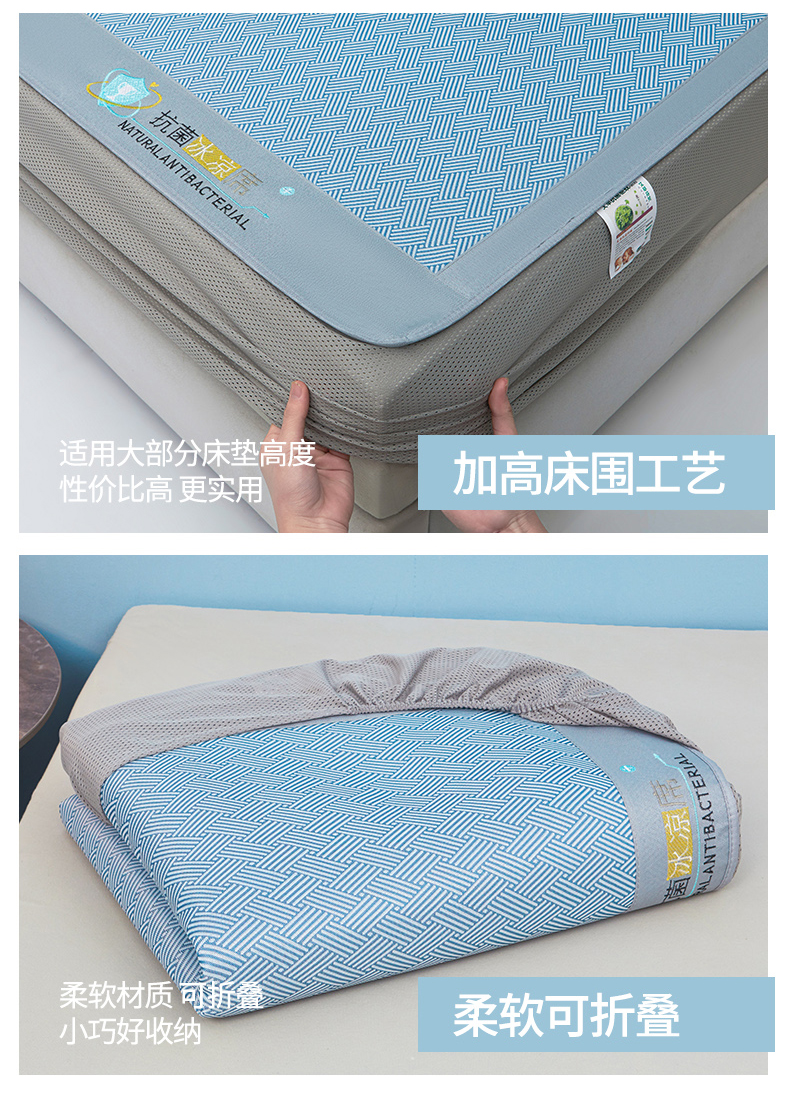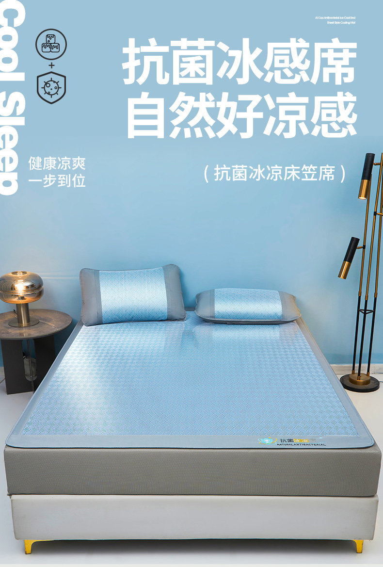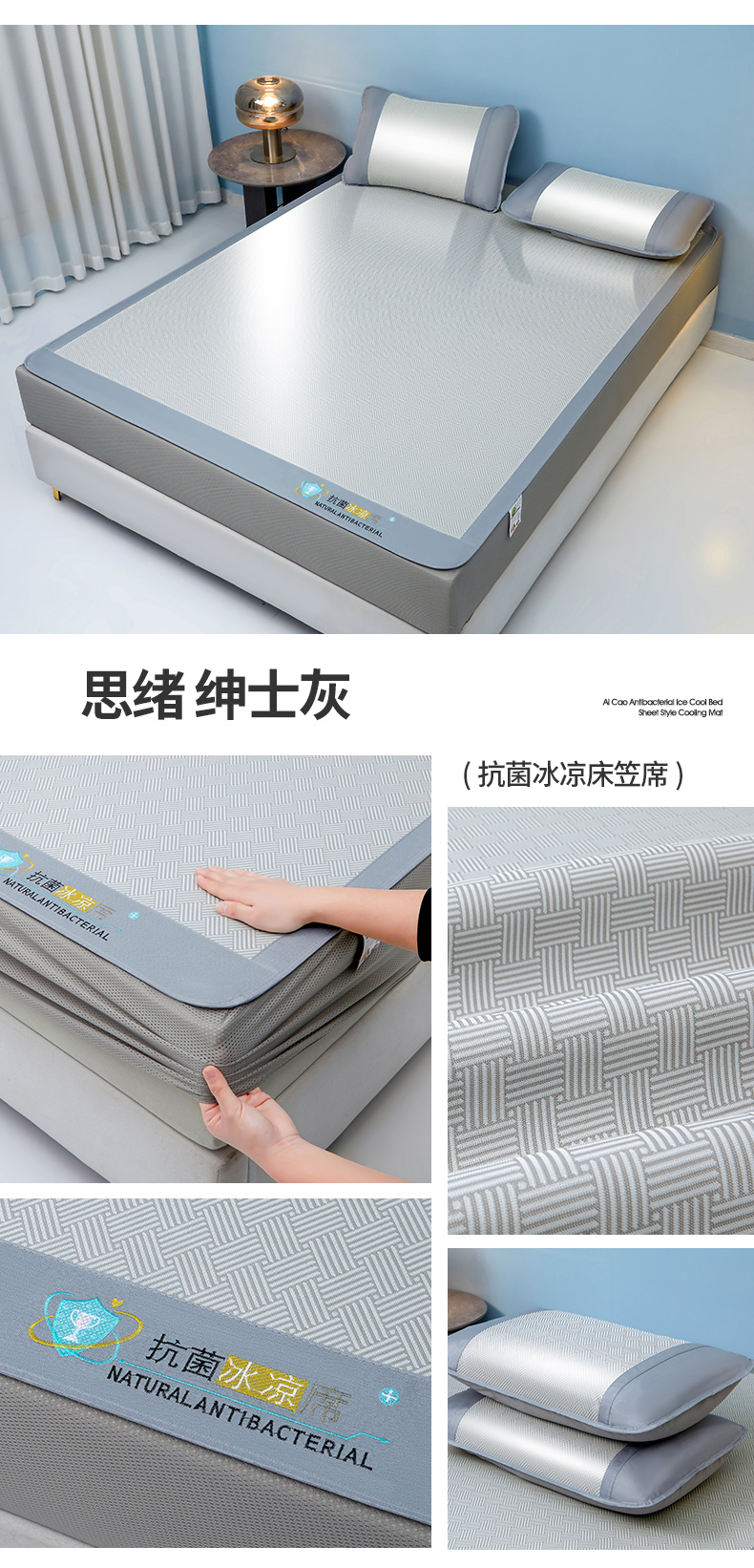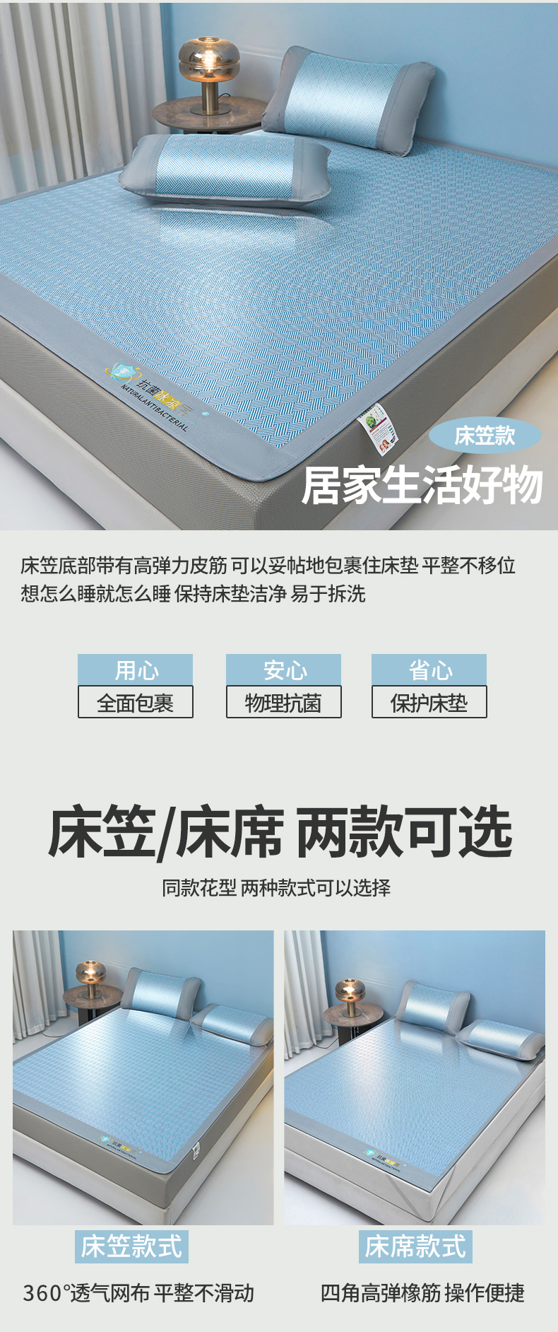 • 91家纺网 家纺一手货源 找家纺 航途席业 2026新款抗菌三明治冰凉席床席床笠-思绪 思绪 静谧蓝床笠款