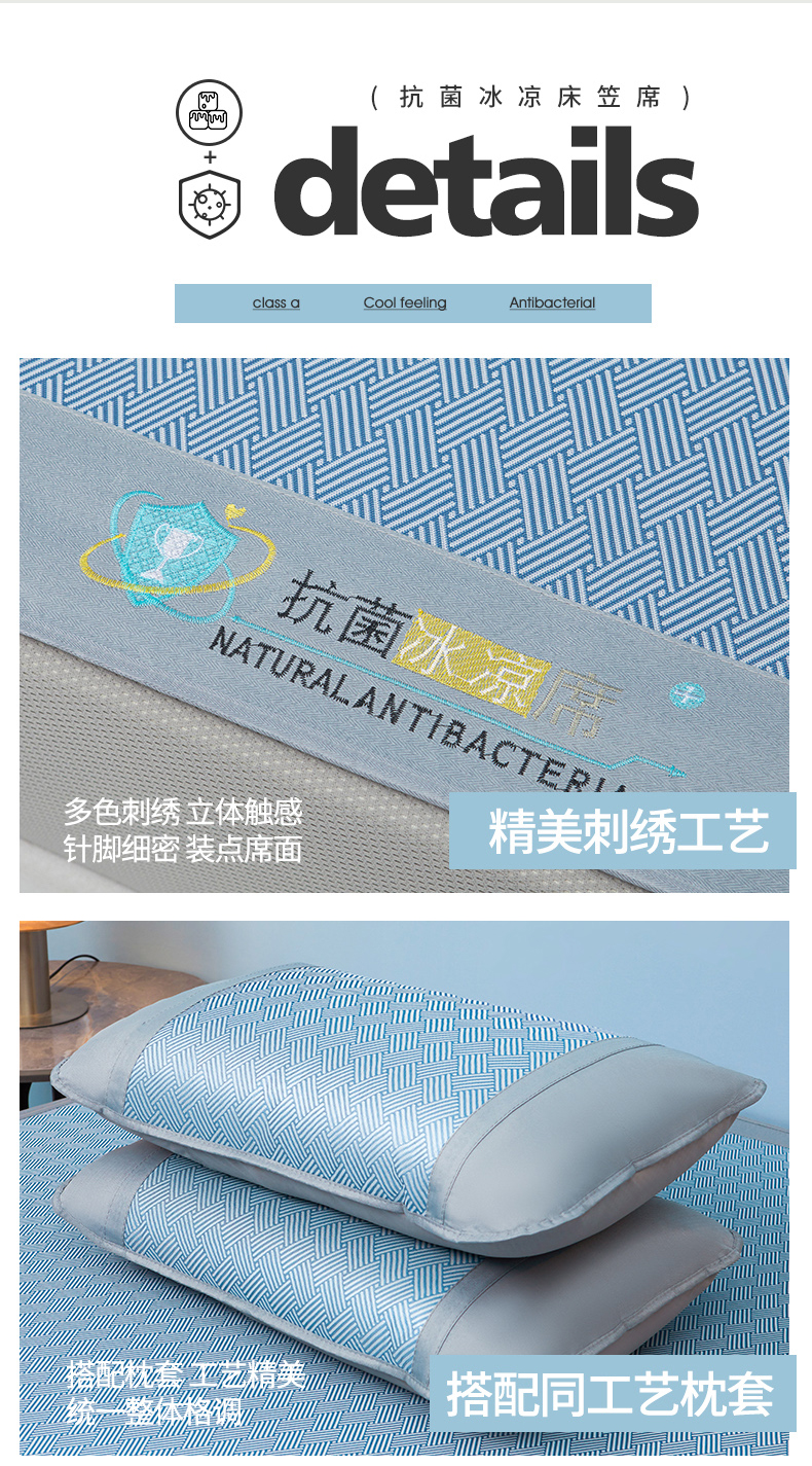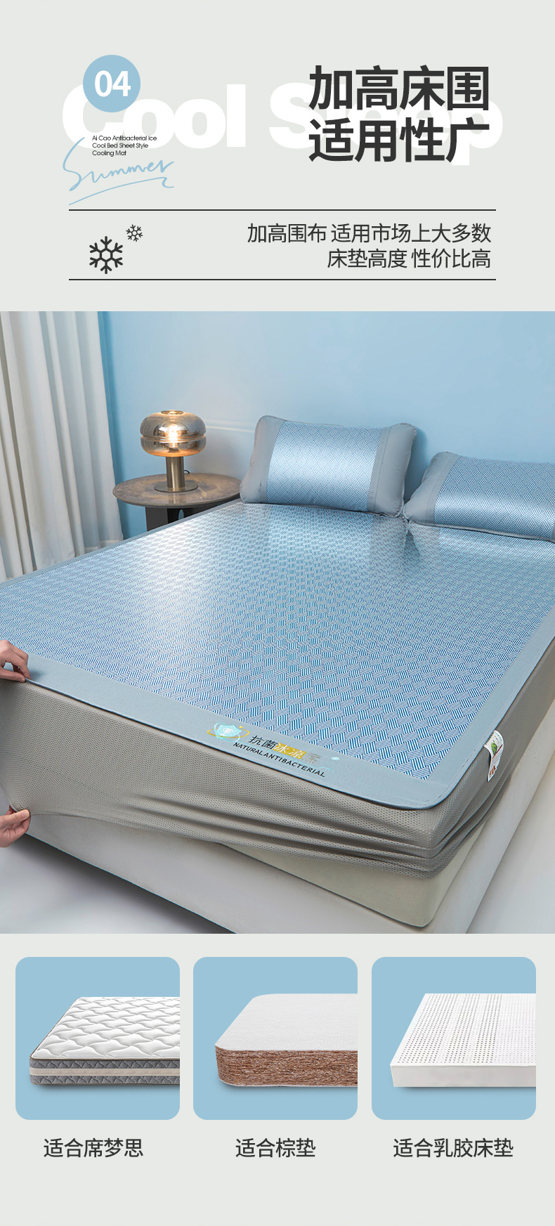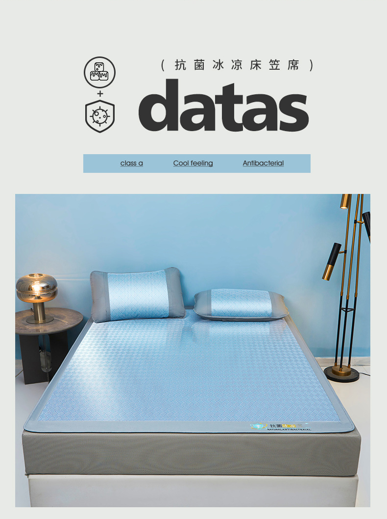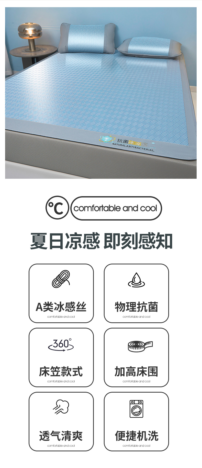 • 91家纺网 家纺一手货源 找家纺 航途席业 2026新款抗菌三明治冰凉席床席床笠-思绪 思绪 静谧蓝床笠款