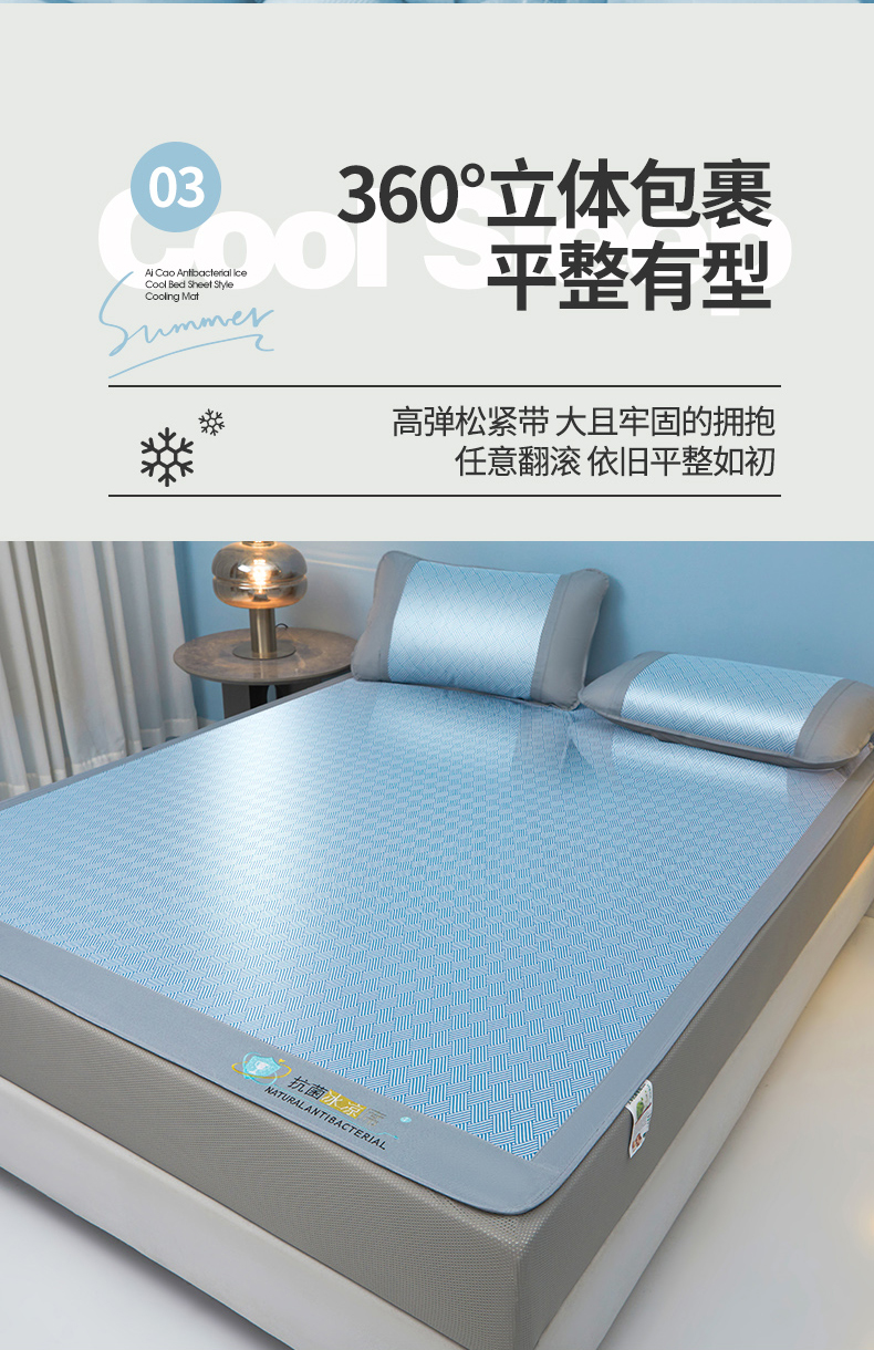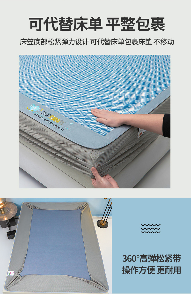 航途席业 2026新款抗菌三明治冰凉席床席床笠-思绪 思绪 静谧蓝床笠款